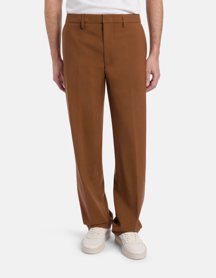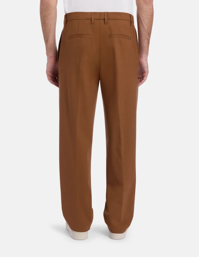 Caleb regular-fit chinos, low waist, straight leg and welt pockets at the back. Cool wool. Dondup logo. Made in Italy