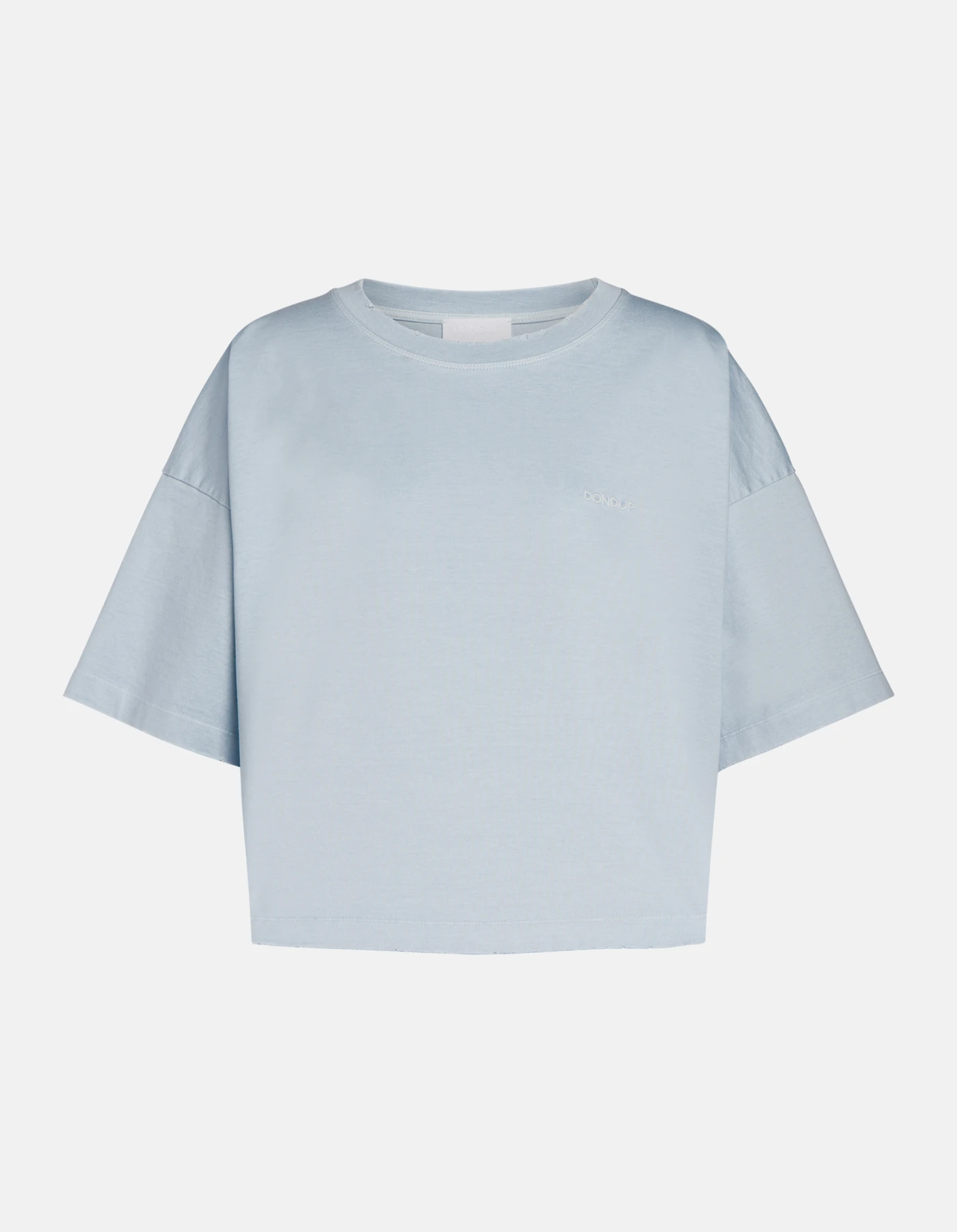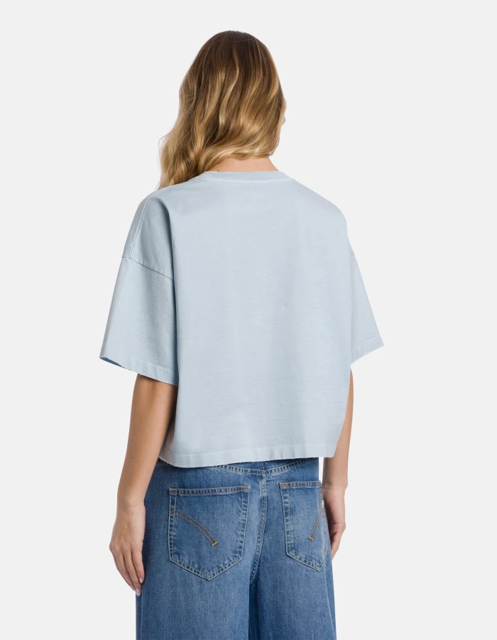Cropped crew-neck T-shirt with short sleeves and embroidered logo on the chest. Treated heavyweight jersey. Dondup logo. Made in Italy