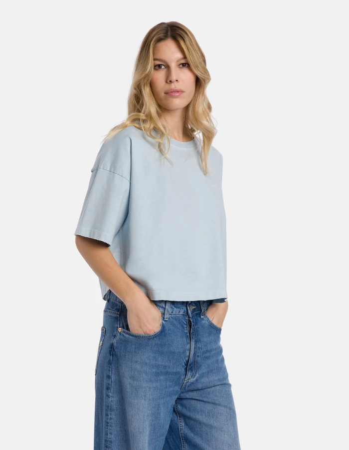 Cropped crew-neck T-shirt in treated jersey