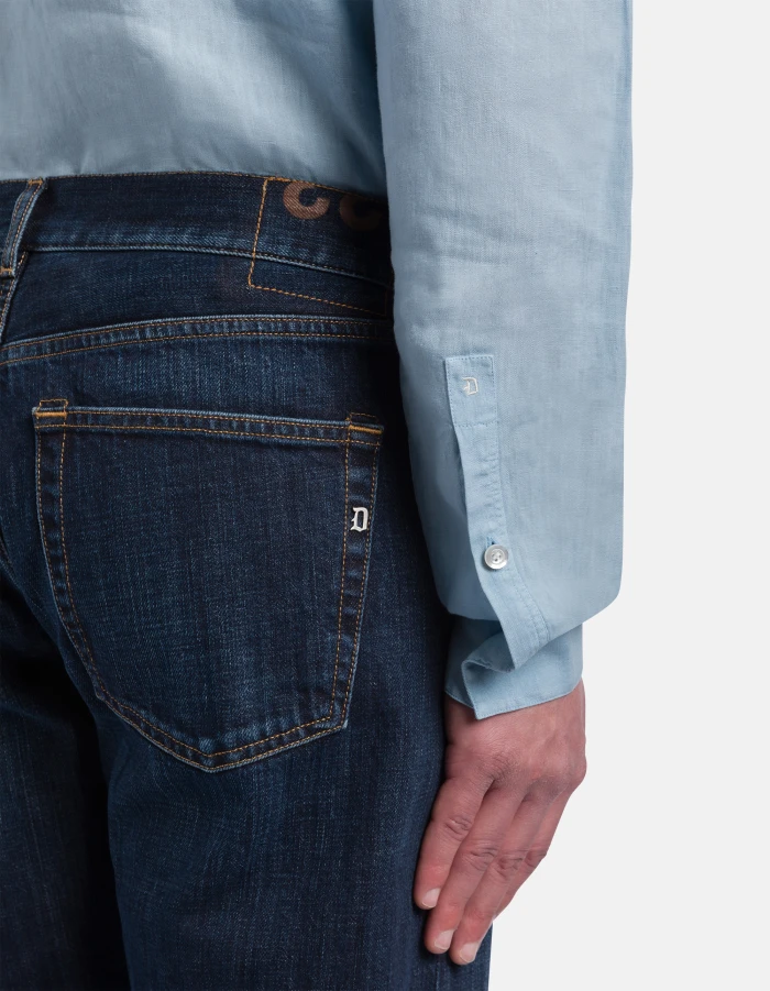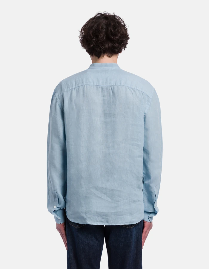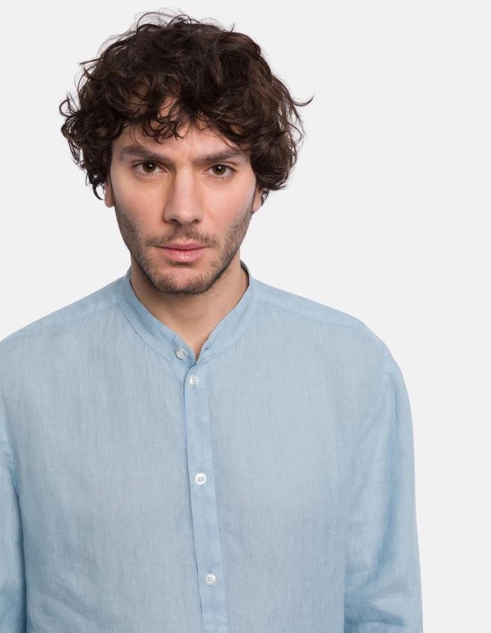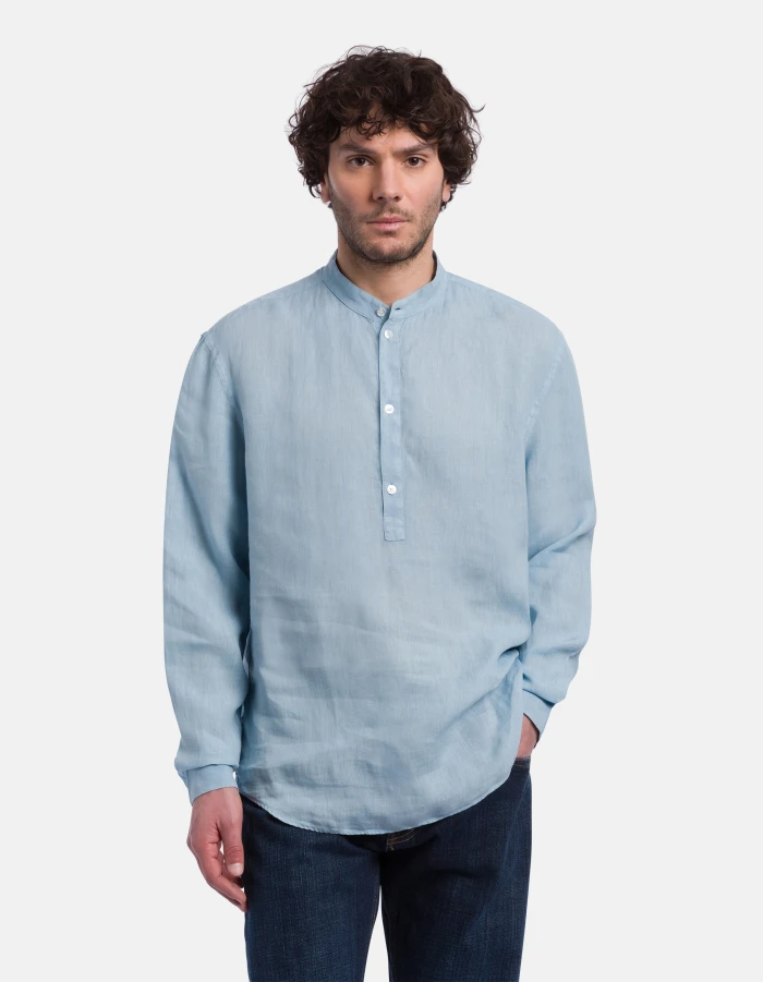 Regular-fit shirt with mandarin collar, Henley front opening. Linen. Garment dyed. Dondup logo. Made in Italy