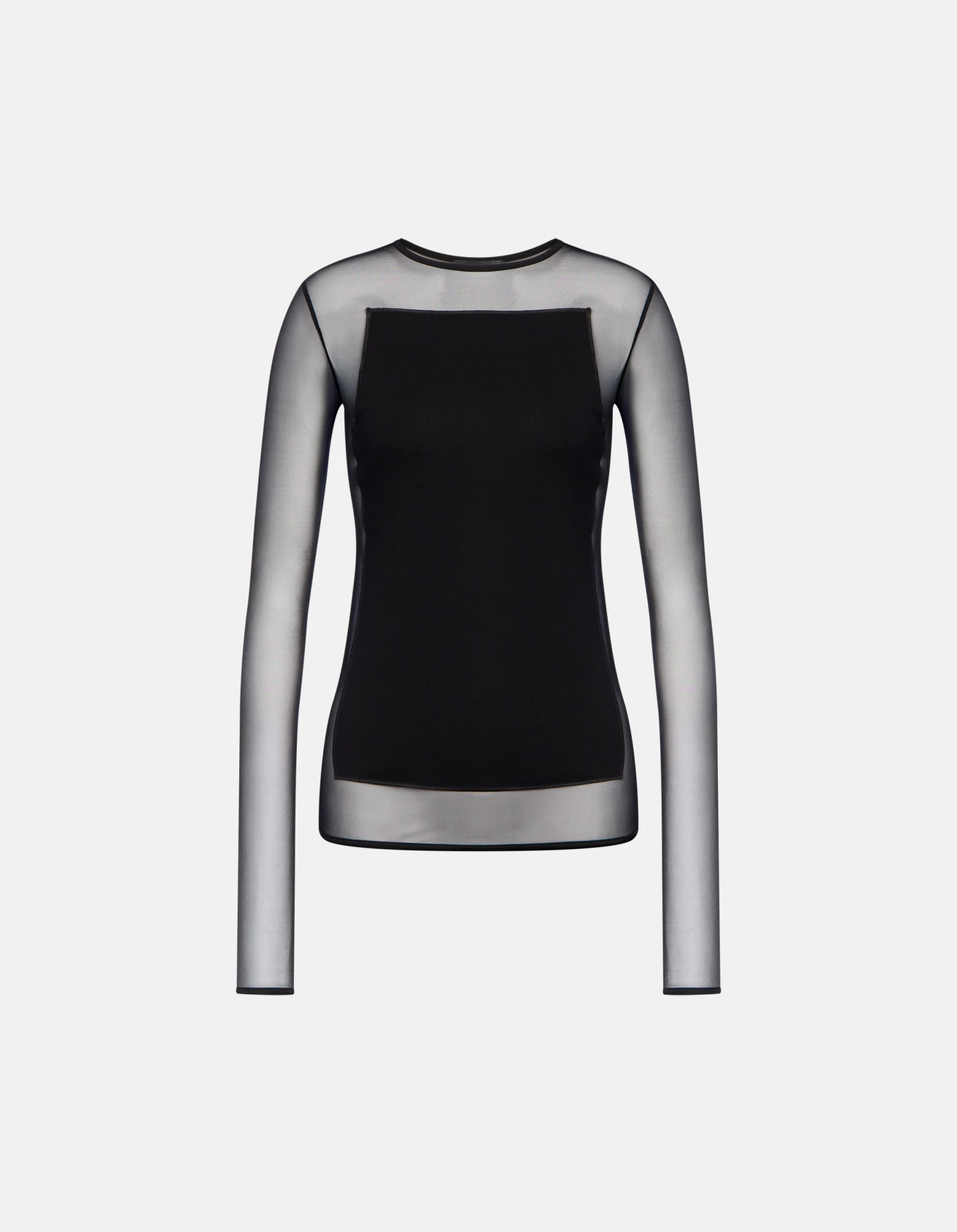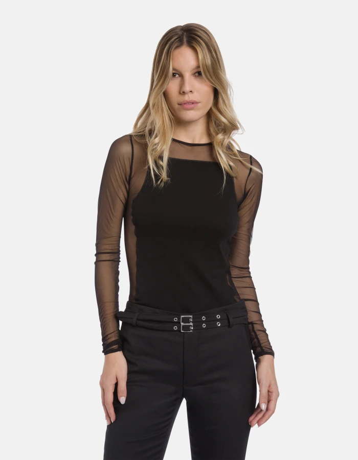 Slim-fit crew-neck T-shirt with long sleeves, made from cotton on the front and back and tulle on the sleeves. Cotton and tulle. Dondup logo. Made in Italy