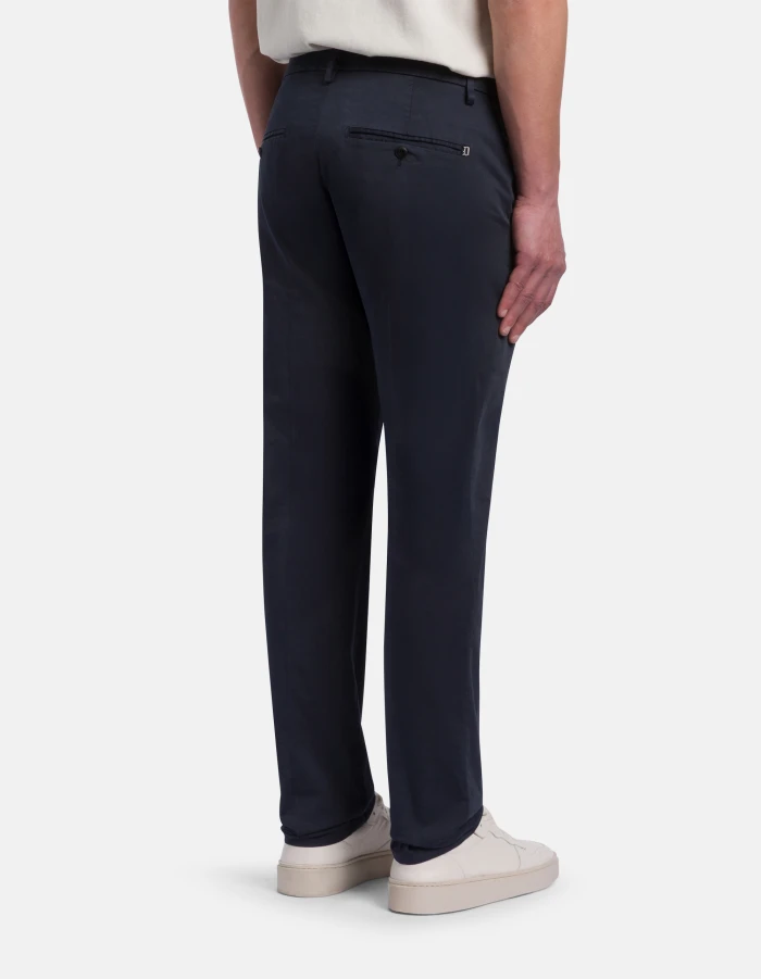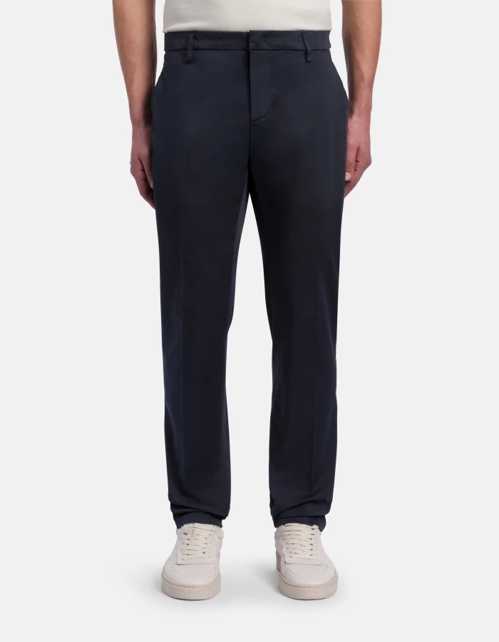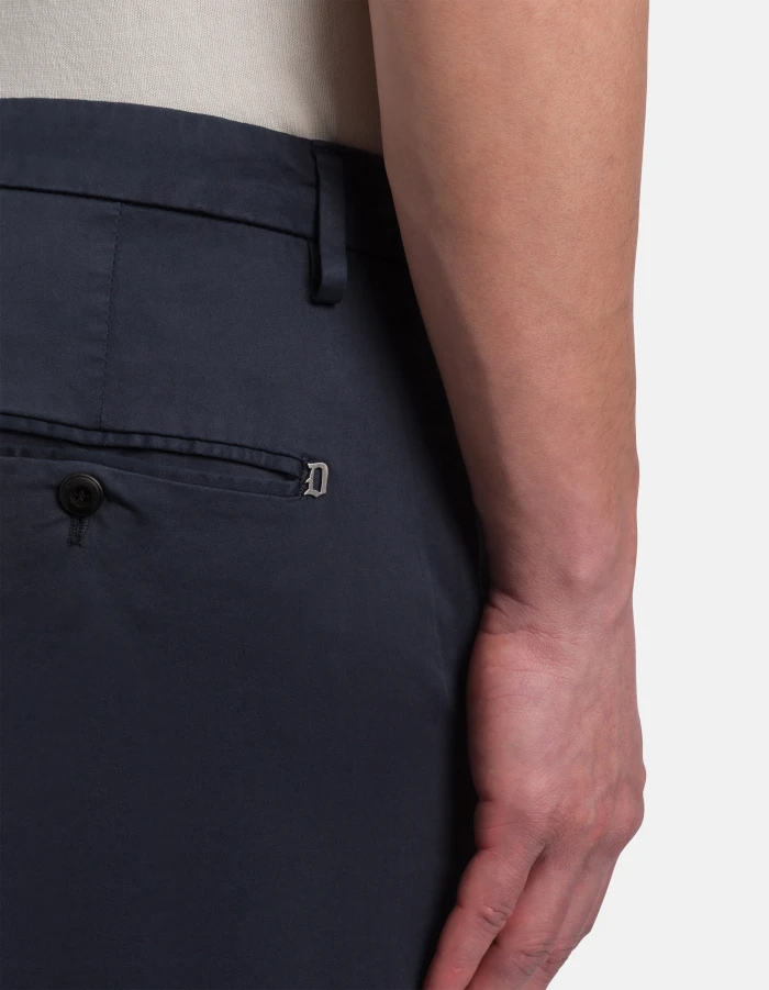 Spiritissimo regular-fit chinos, regular waist, welt pockets at the back. Stretch satin. Garment dyed. Dondup logo. Made in Italy