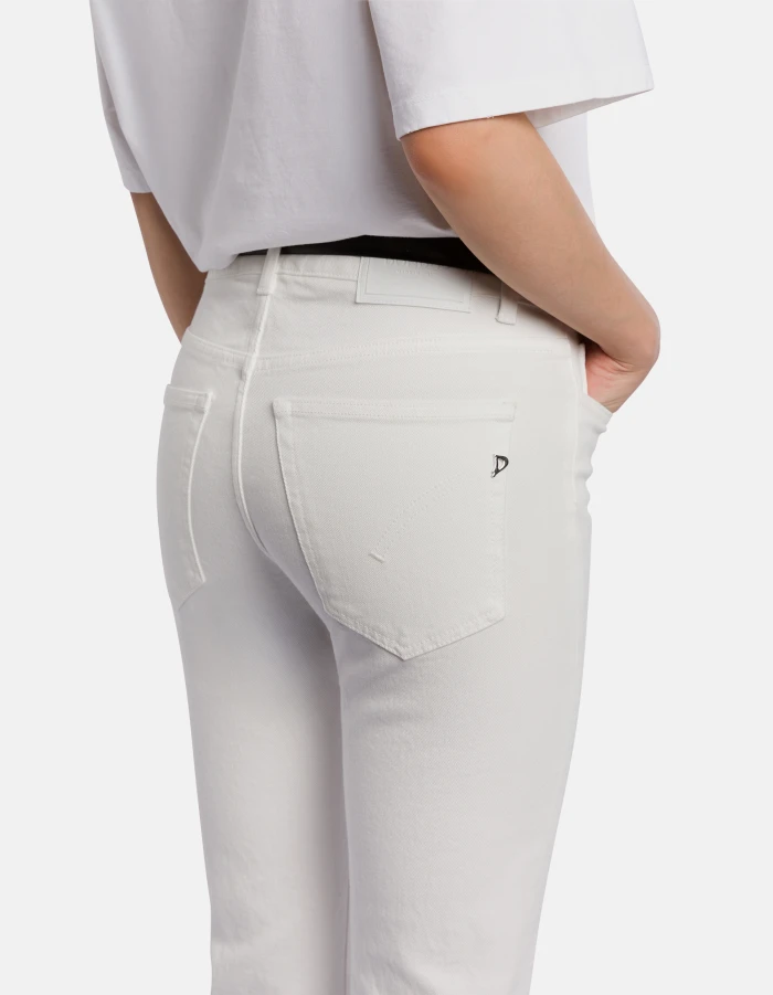 Five-Pocket-Jeans Karen in Super-Skinny Passform mit Bootcut-Bein, normalem Bund und weitem Saum. Stretch-Bull Bluesign APPROVED, 11 1/2 oz. Bluesign-Stückfärbung. Dondup-Logo. Made in Italy