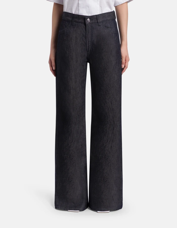 Jeans Amber mit weitem Bein aus Rigid Denim mit Seide