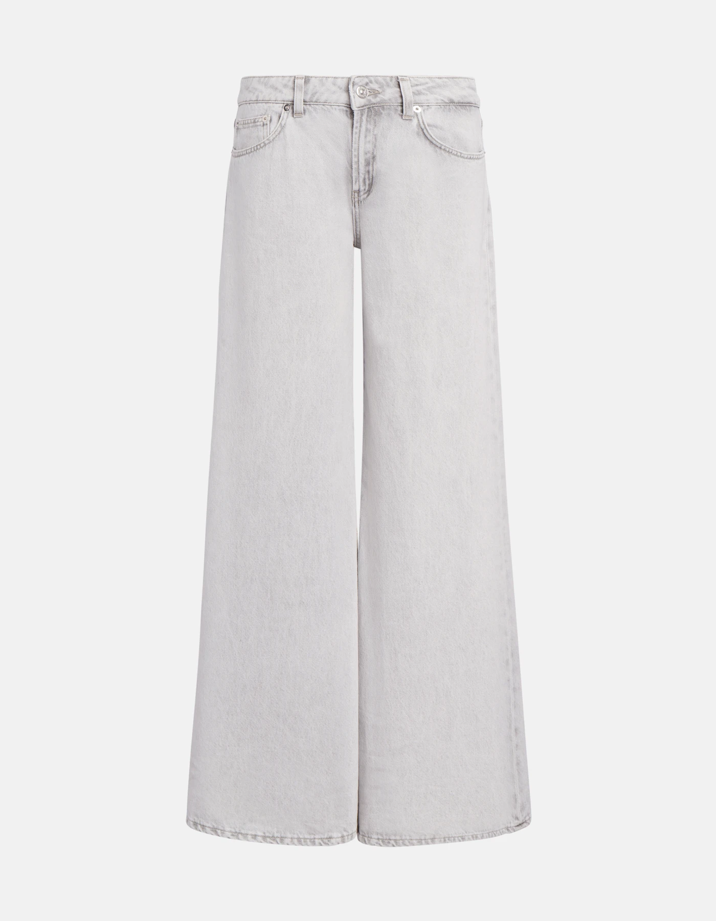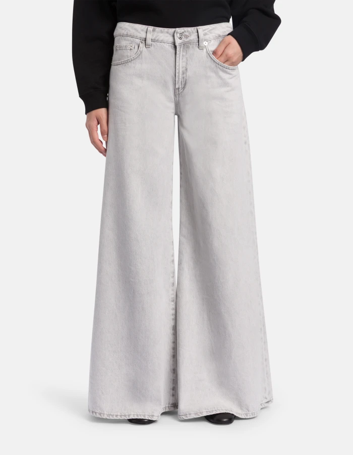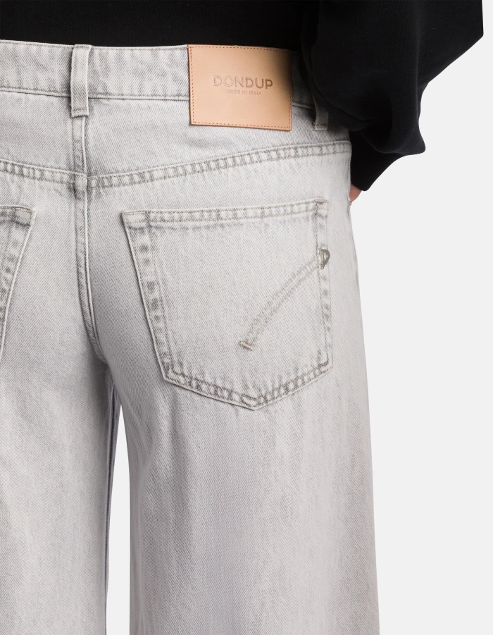Five-Pocket-Jeans Marlen in Wide Leg-Passform mit normalem Bund und sehr weitem Bein. Grauer Rigid Denim, 10,50 oz. Schlichte helle Waschung. Dondup-Logo. Made in Italy