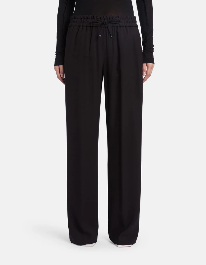 Jogginghose Marisol in legerer Passform mit elastischem Bund, Tunnelzug und einer Gesäßleistentasche. Viskosegabardine. Dondup-Logo. Made in Italy