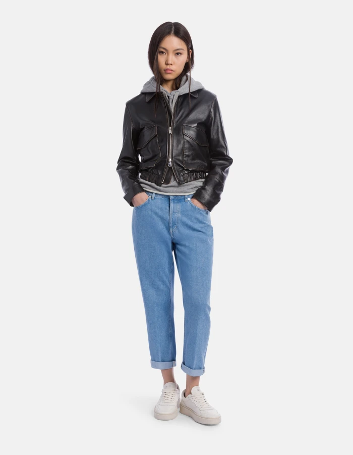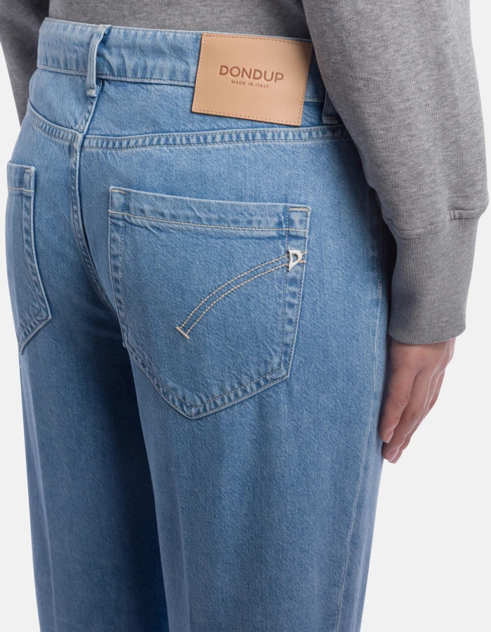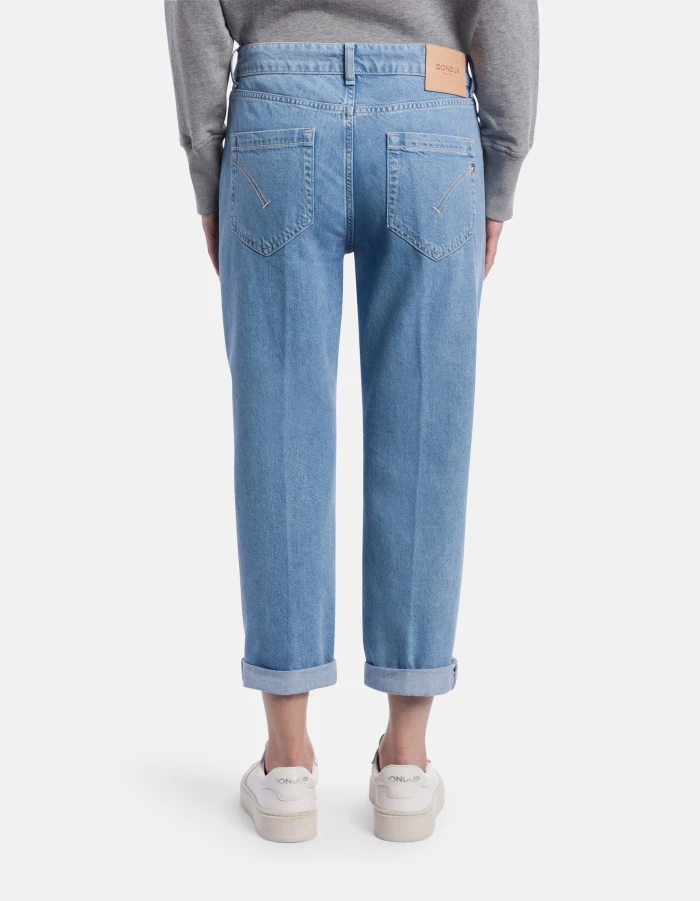 Knöchellange Five-Pocket-Jeans Koons in legerer Passform mit normalem Bund und verdeckter Knopfleiste. Blauer Rigid Denim aus Baumwolle und Lyocell, 10 1/2 oz. Schlichte helle Waschung. Dondup-Logo. Made in Italy