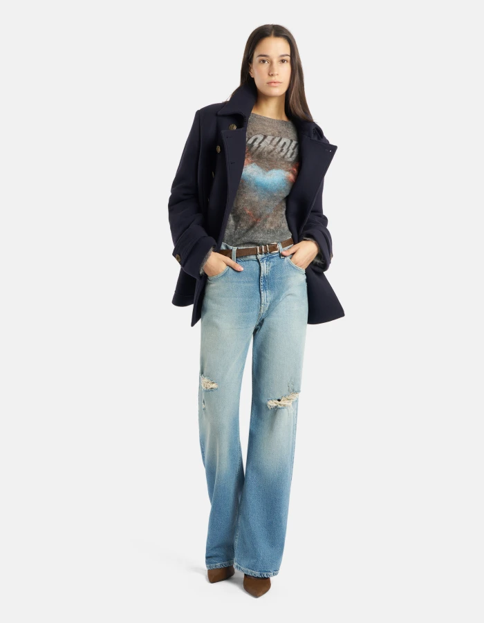 Rundhalspullover in Oversize-Passform mit langen Ärmeln und Saum und Bündchen in Patentstrick. Print auf der Vorderseite. Alpaka. Dondup-Logo. Made in Italy