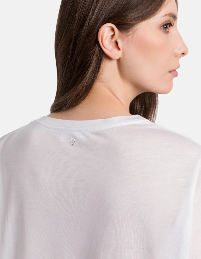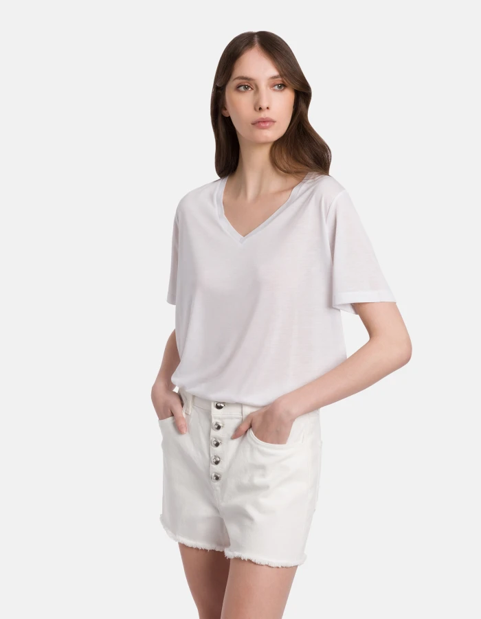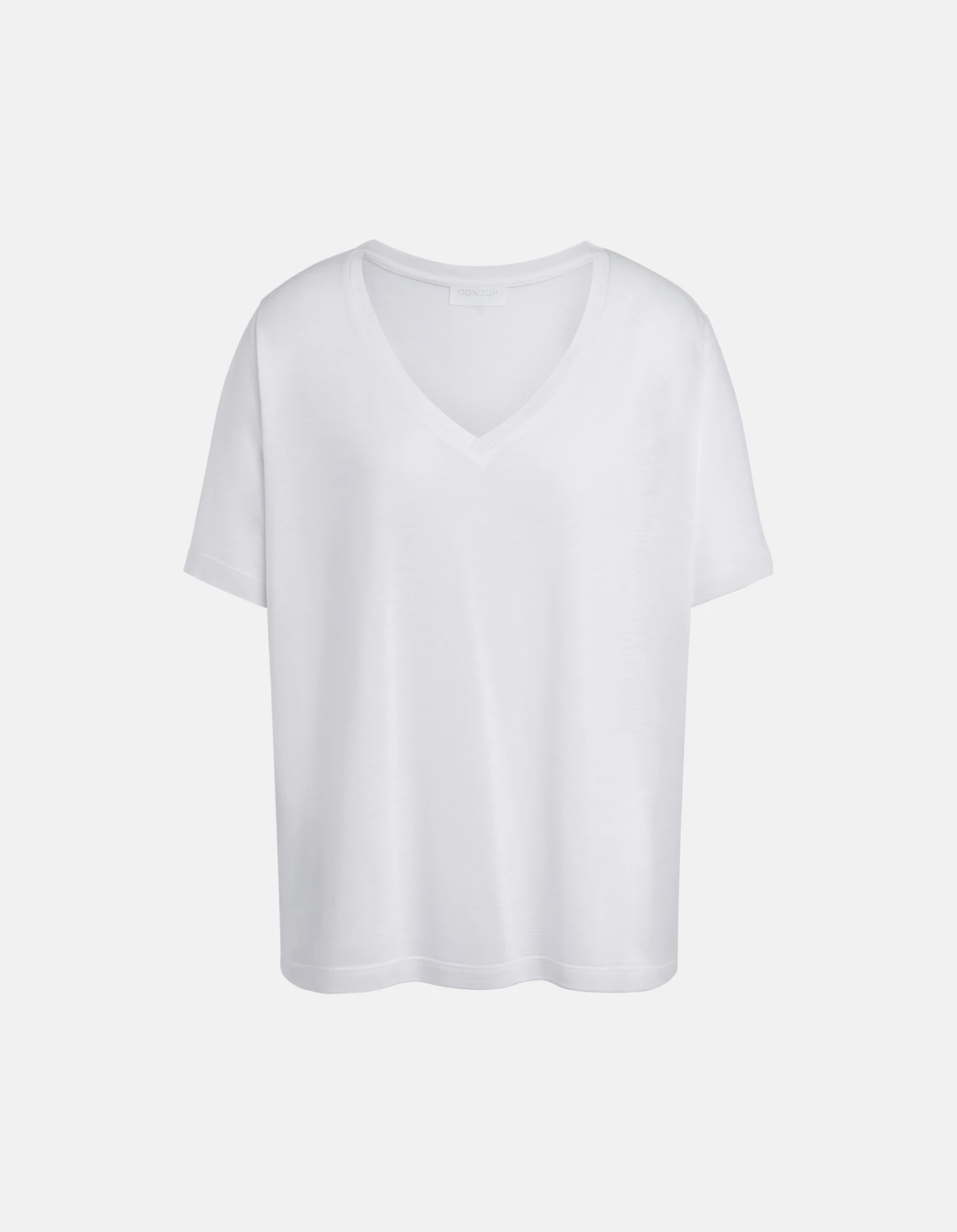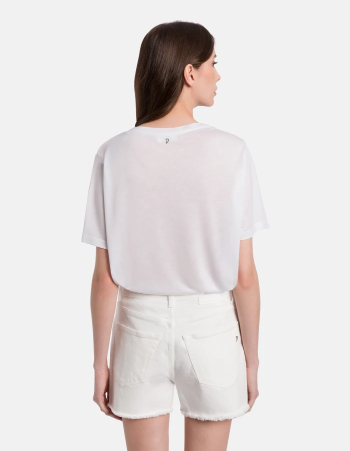 T-Shirt in normaler Passform mit V-Ausschnitt und kurzen Ärmeln. Modal und Seide. Dondup-Logo. Made in Italy