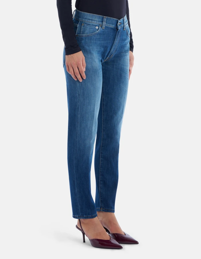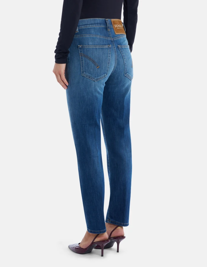 Five-Pocket-Jeans Daila in schmaler Passform mit normalem Bund und geradem Bein. Blauer Stretch-Denim, 11 oz. Schlichte mittlere Waschung. Dondup-Logo. Made in Italy