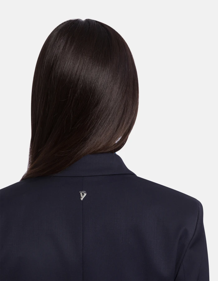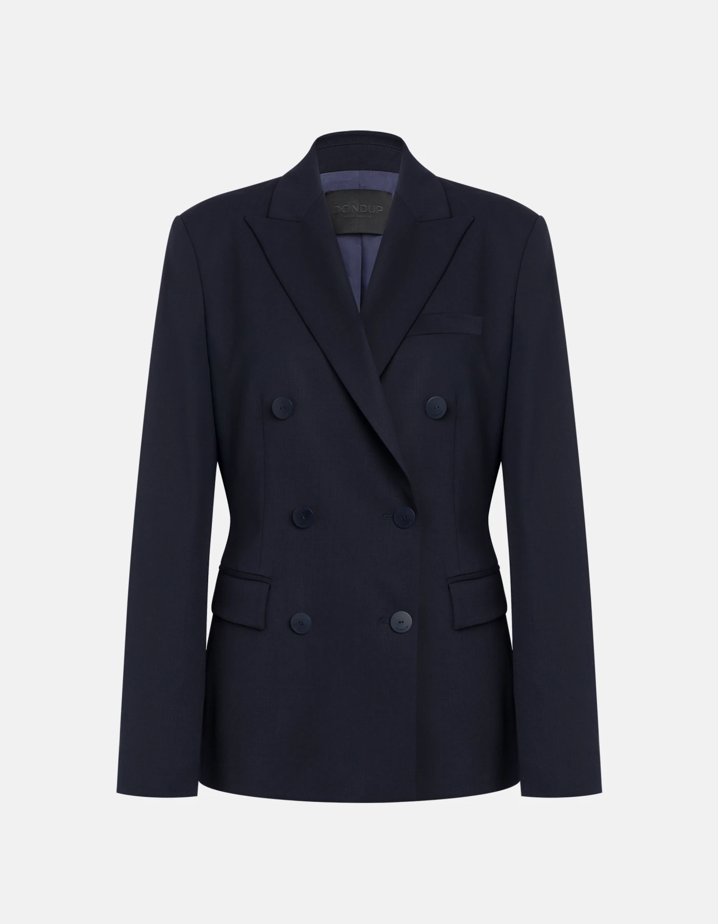 Zweireihiger 6-Knopf-Blazer in schmaler Passform mit Spitzfasson und Pattentaschen. Stretchgabardine mit Cool Wool. Dondup-Logo. Made in Italy