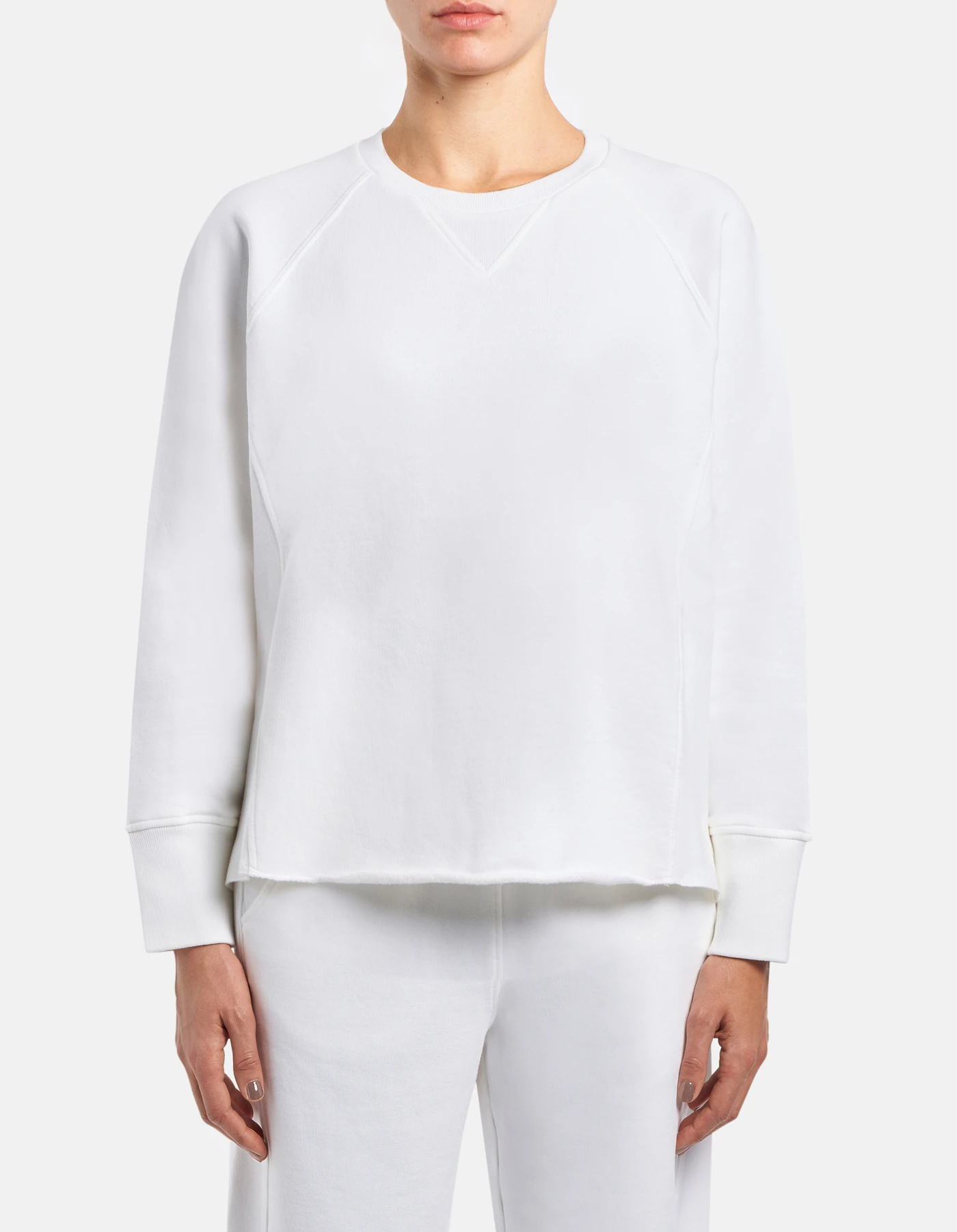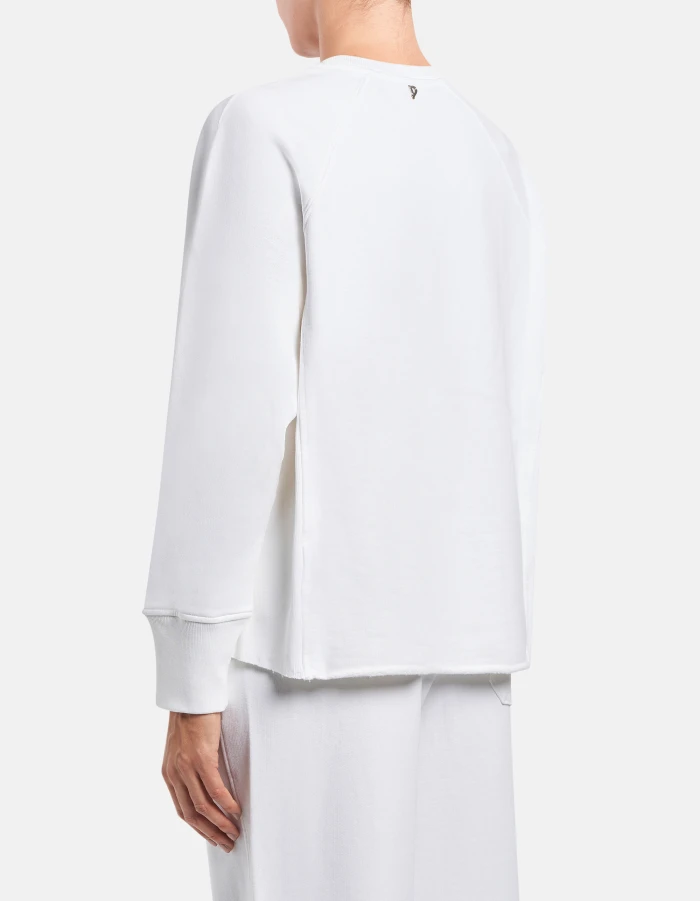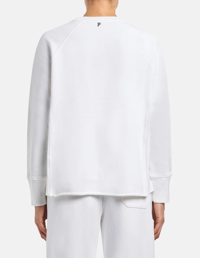 Regular crew-neck sweatshirt with long raglan sleeves and ribbed sides. Raw edge hem. Logo applique at the back. Brushed fleece. Dondup logo. Made in Italy