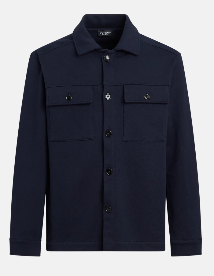 Regular-fit field jacket shirt with long sleeves, patch pockets in front and four-hole button closure. Cotton fleece. Dondup logo. Made in Italy