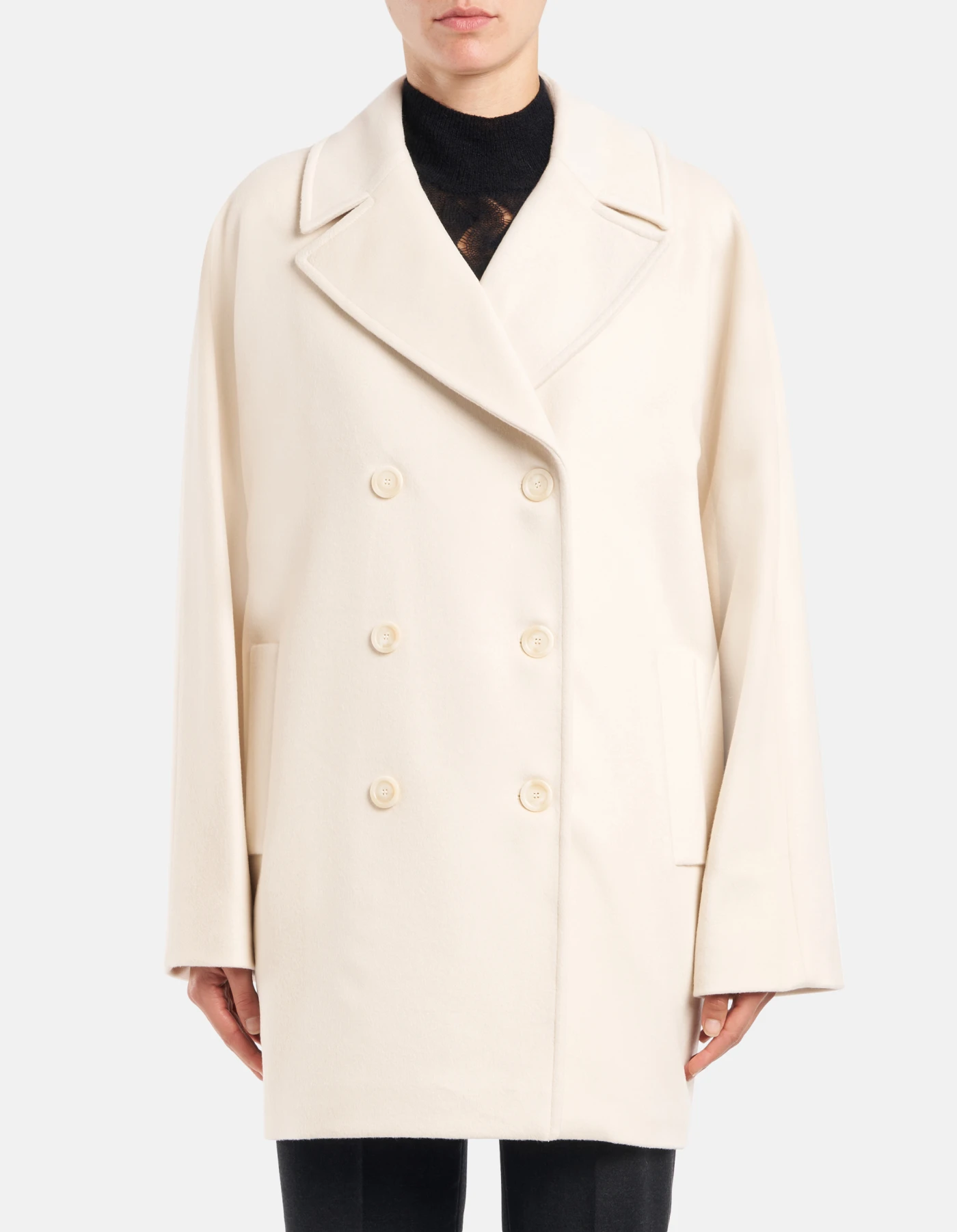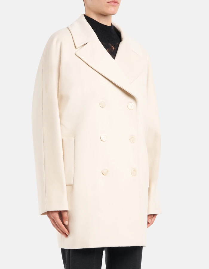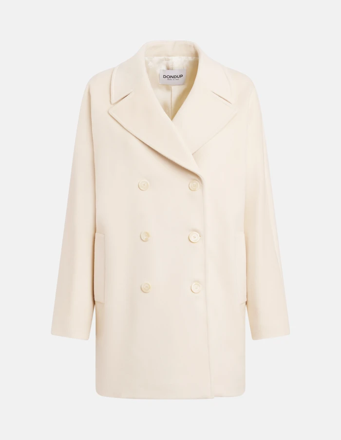 Regular-fit double-breasted peacoat with six buttons, kimono sleeves and welt pockets. Wool cashmere velour. Dondup logo. Made in Italy