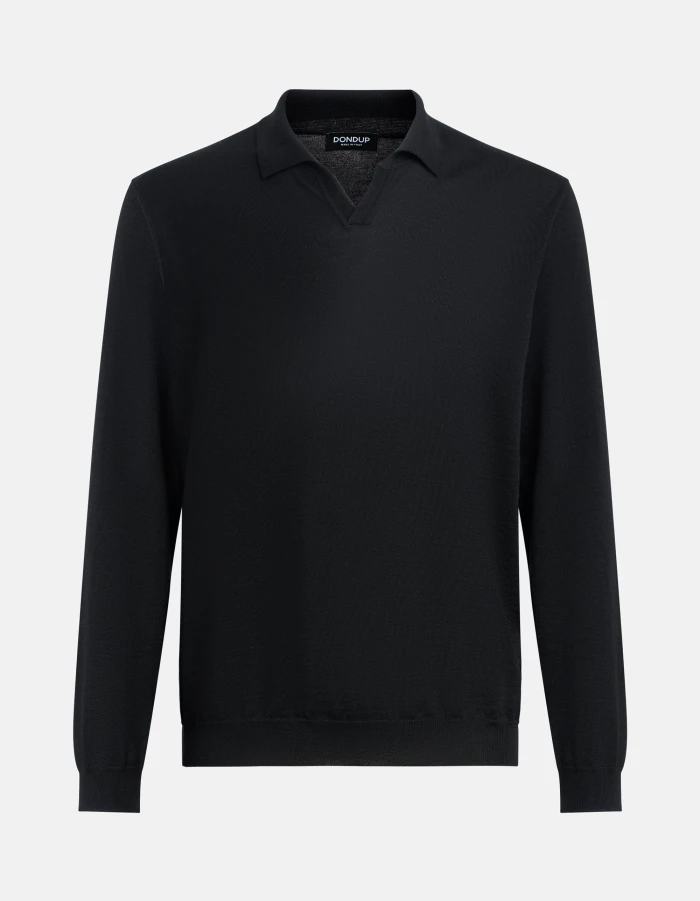Regular-fit polo shirt with long sleeves and D logo appliqué on the back. Wool and cotton. Dondup logo. Made in Italy