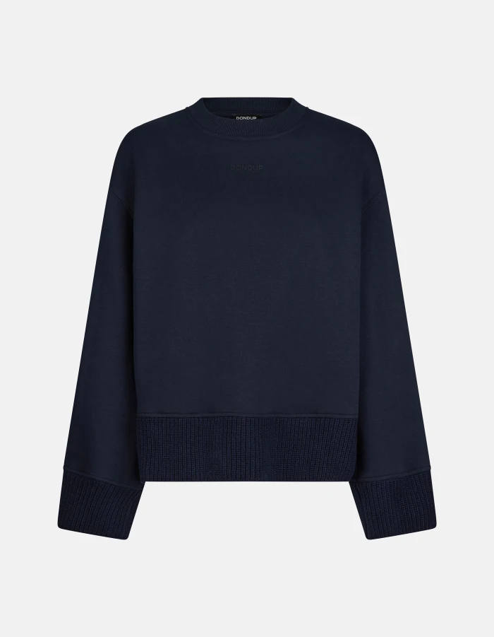 Slim-fit crew-neck sweatshirt with long sleeves, knitted insets and logo applique on centre front. Cotton and wool. Dondup logo. Made in Italy