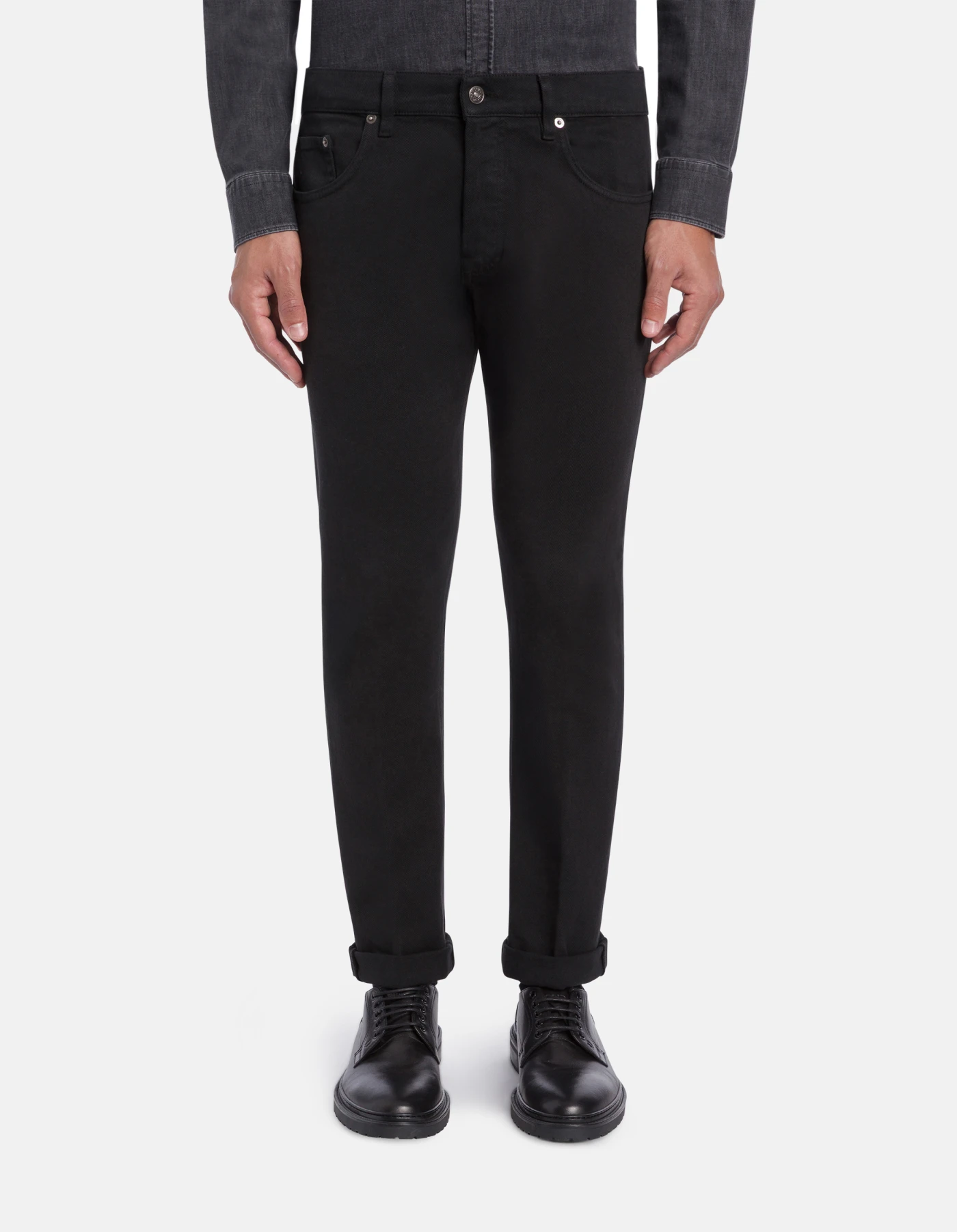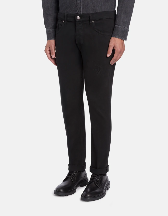Icon regular-fit five-pocket jeans, regular waist. 11 1/2 oz bluesign APPROVED stretch bull denim. Bluesign garment dyed. Dondup logo. Made in Italy