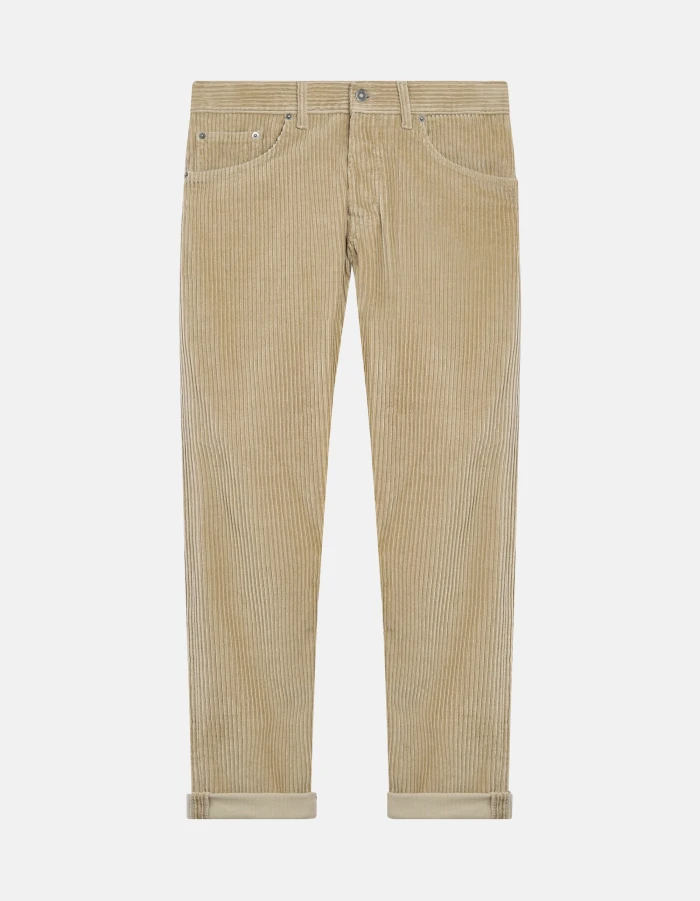 Icon regular-fit five-pocket trousers, regular waist. 500 rib stretch needlecord. Dondup logo. Made in Italy