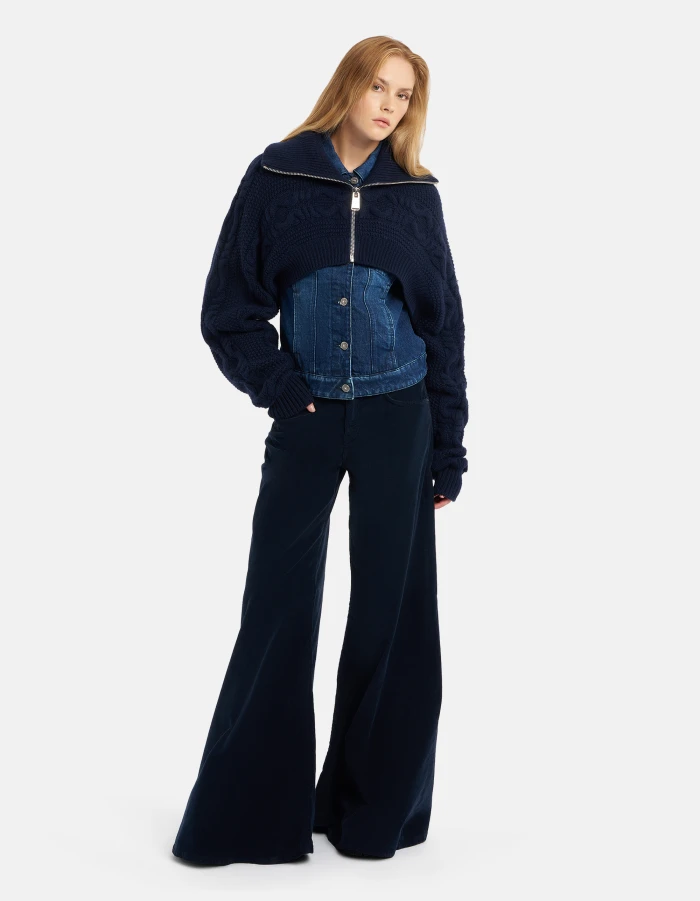 Marlen very wide leg five-pocket jeans, regular waist. Stretch cotton and lyocell velvet. Garment dyed. Dondup logo. Made in Italy