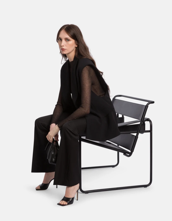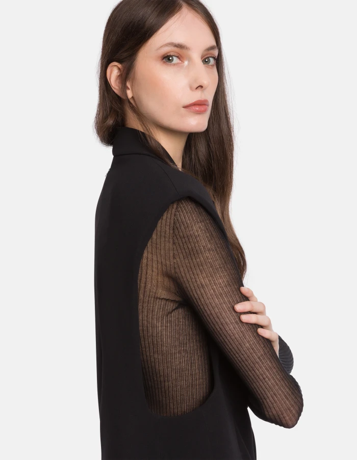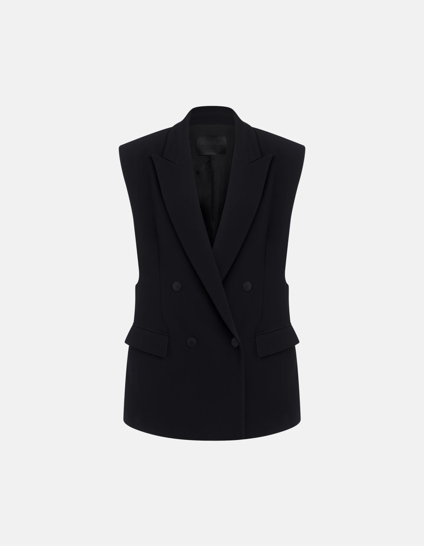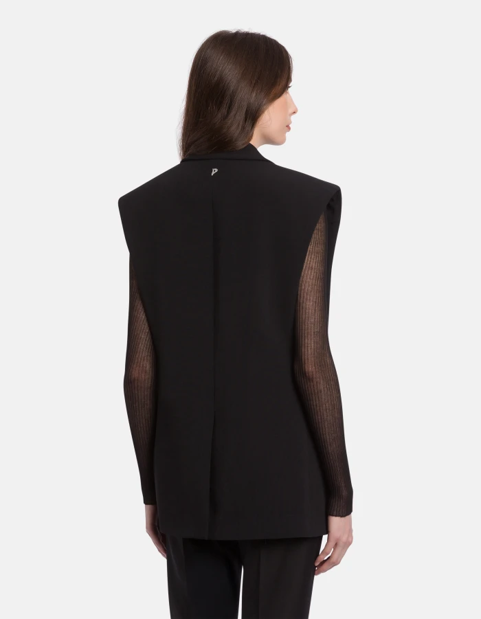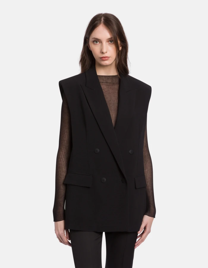 Oversized double-breasted waistcoat with four buttons, peak lapels, flap pockets, wide shoulders and dropped armholes. Stretch crepe. Dondup logo. Made in Italy
