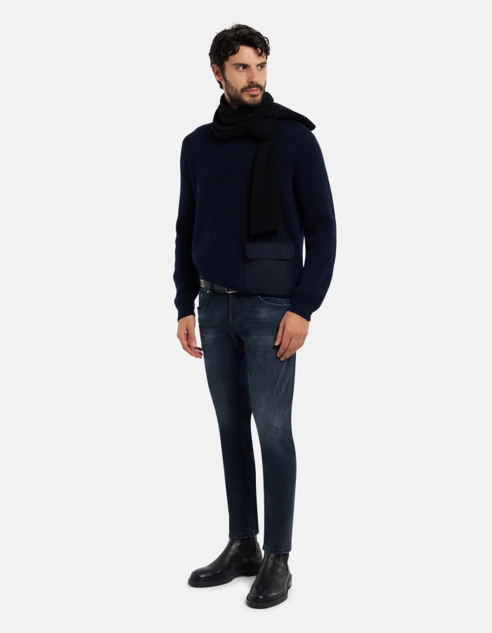 Regular-fit crew-neck jumper with long sleeves, fabric patch pocket on the front and D logo at the back. Fisherman’s rib. Dondup logo. Made in Italy