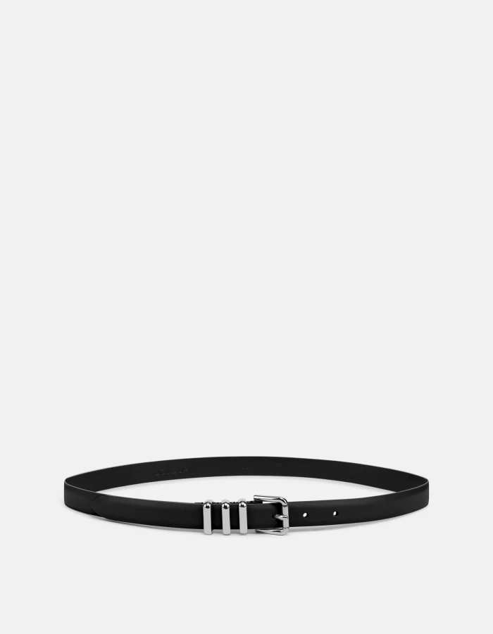 2 cm wide belt with square buckle and galvanic nickel-plated metal loops. Leather. Made in Italy