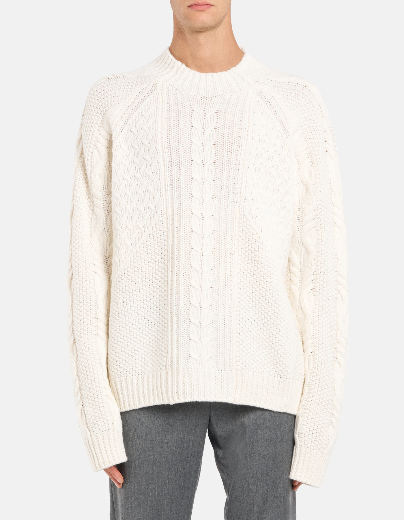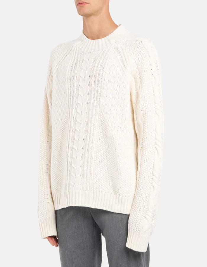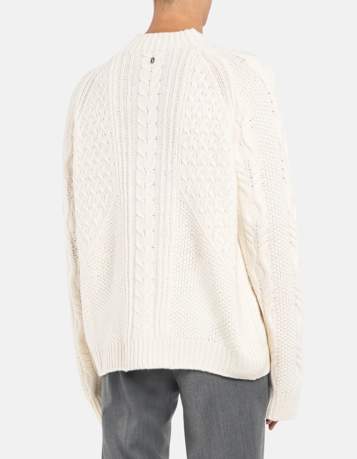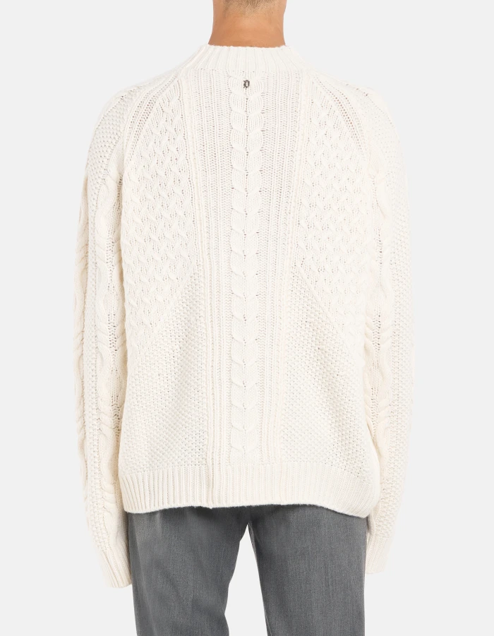 Regular-fit polo neck jumper with long sleeves and D logo appliqué on the back. Varied knit patterns. Dondup logo. Made in Italy