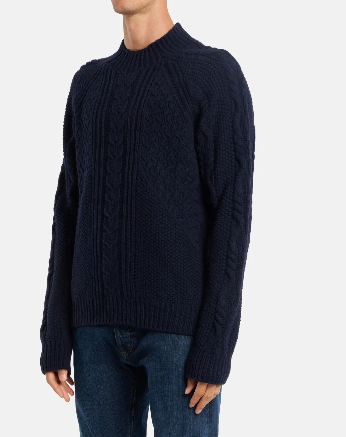 Regular-fit polo neck jumper in worked wool