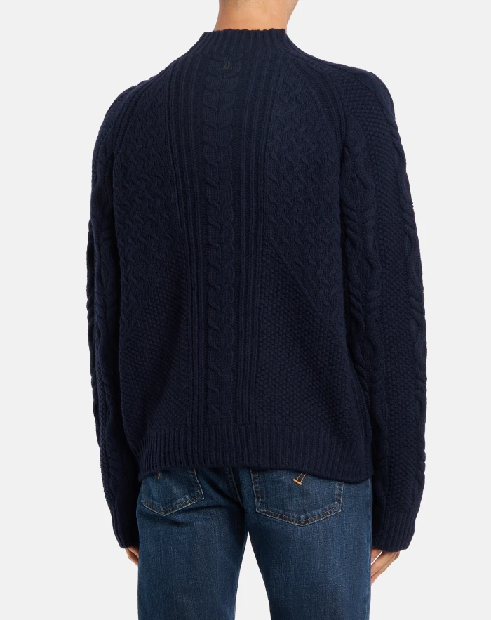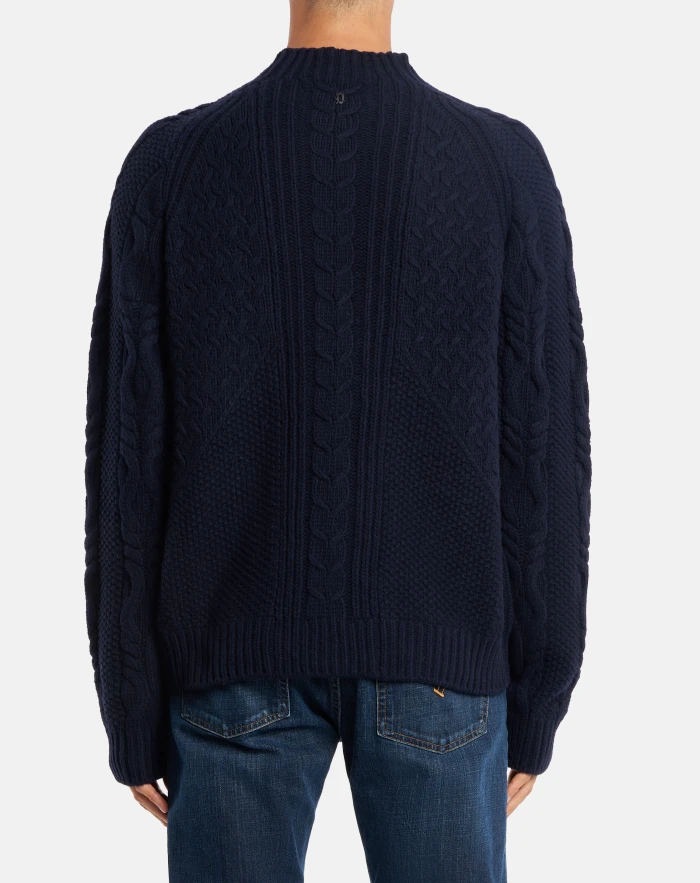 Regular-fit polo neck jumper with long sleeves and D logo appliqué on the back. Varied knit patterns. Dondup logo. Made in Italy