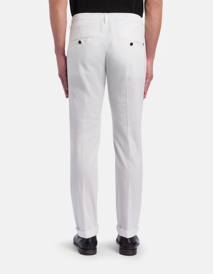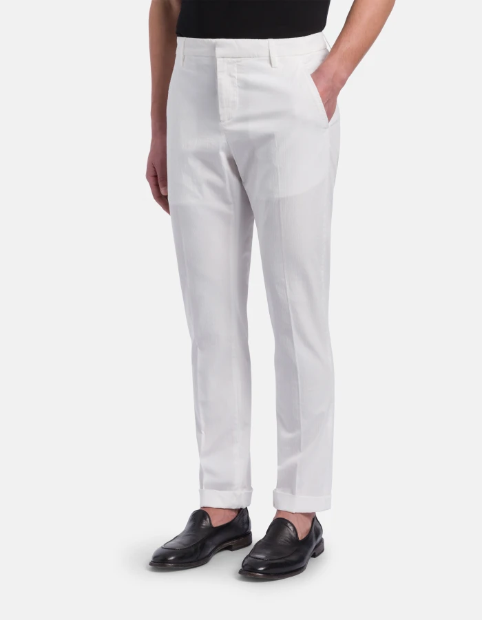 Gaubert slim-fit chinos, low waist, welt pockets at the back. Stretch weave. Garment dyed. Dondup logo. Made in Italy