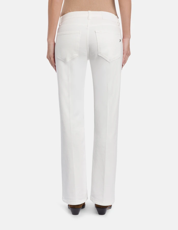 Yasmin 5-pocket bootcut jeans, regular rise, slant pockets, ribbing on the front. 11.5 oz bluesign APPROVED stretch bull denim. Bluesign garment-dyed. Dondup logo. Made in Italy