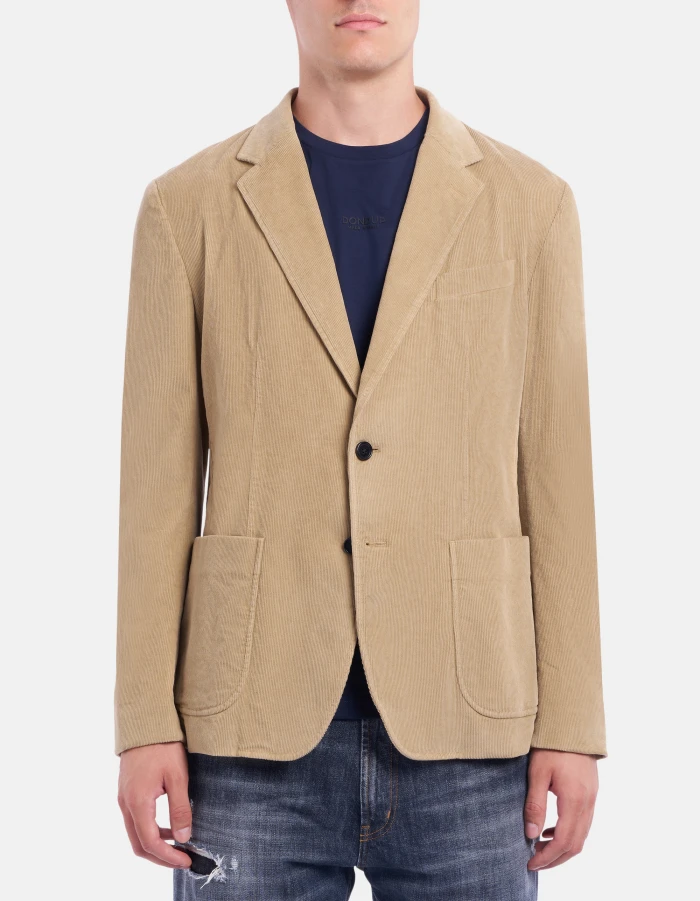 Einreihiger 2-Knopf-Blazer in schmaler Passform mit aufgesetzten Taschen und Leistentasche im Brustbereich. Gefüttert. Cordsamt, 1500 Rippen. Stückfärbung. Dondup-Logo. Made in Italy