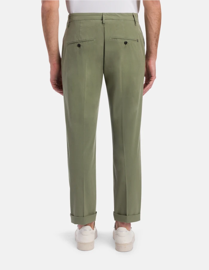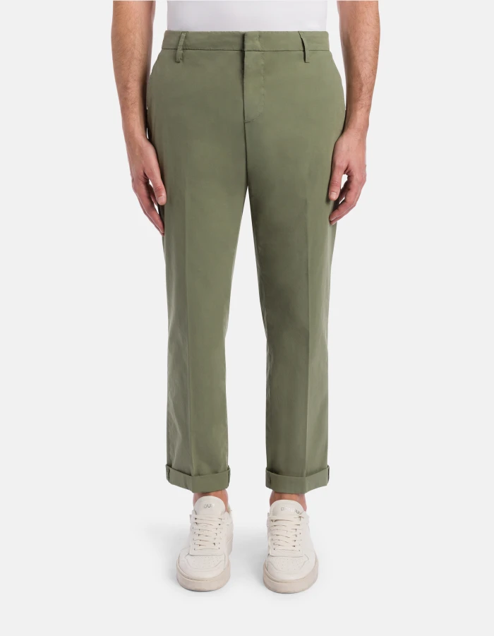 Chinohose Gaubert in lockerer normaler Passform mit niedrigem Bund und Leistentaschen am Gesäß. Leichtes Popelinegewebe. Stückfärbung. Dondup-Logo. Made in Italy