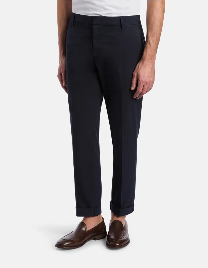 Chinohose Gaubert in lockerer normaler Passform mit niedrigem Bund und Leistentaschen am Gesäß. Leichtes Popelinegewebe. Stückfärbung. Dondup-Logo. Made in Italy