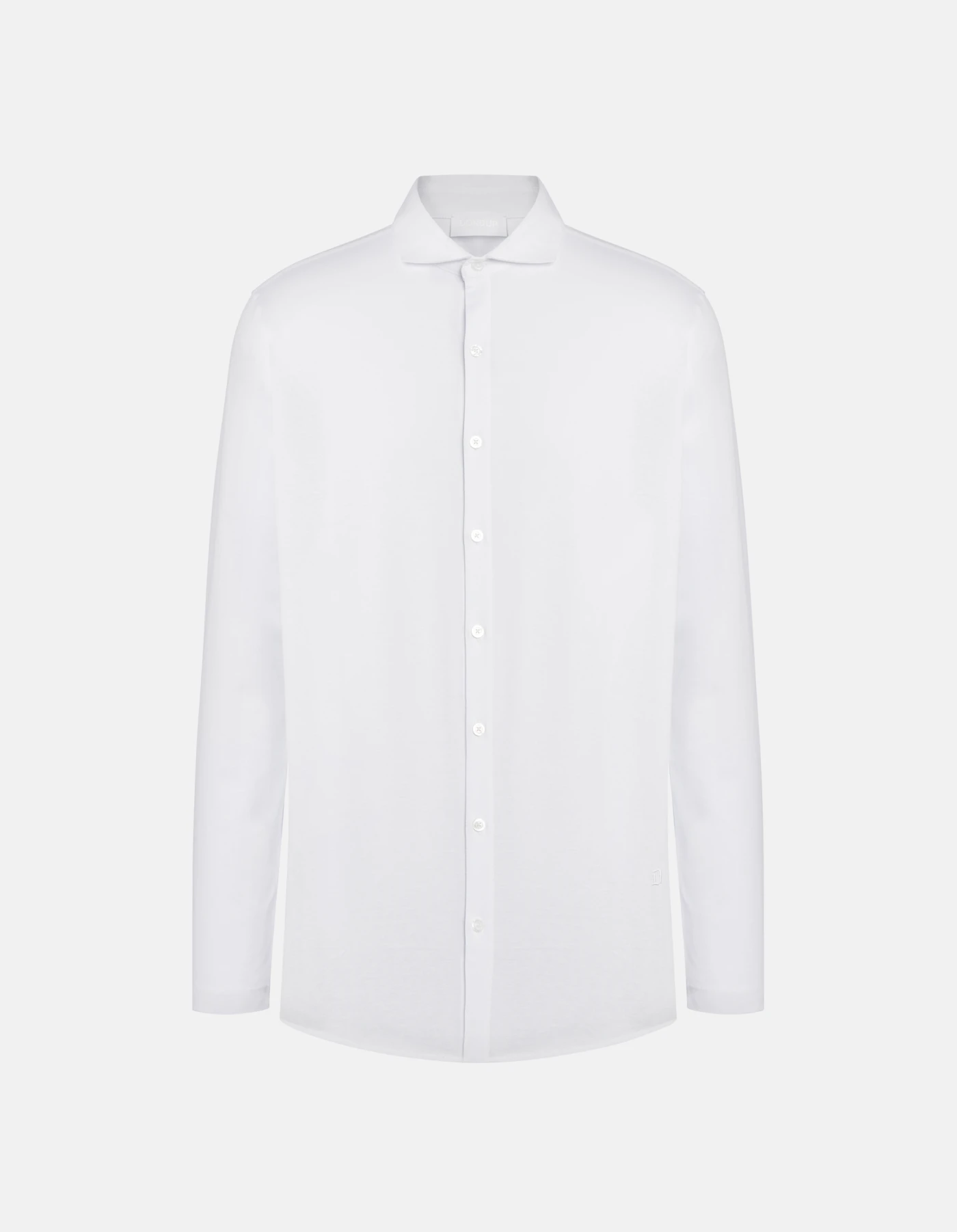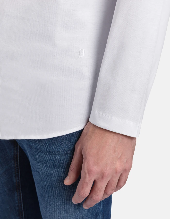 Hemd in normaler Passform mit Eton-Kragen und aufgesticktem D-Logo am vorderen Saum. Reiner Baumwolljersey. Dondup-Logo. Made in Italy