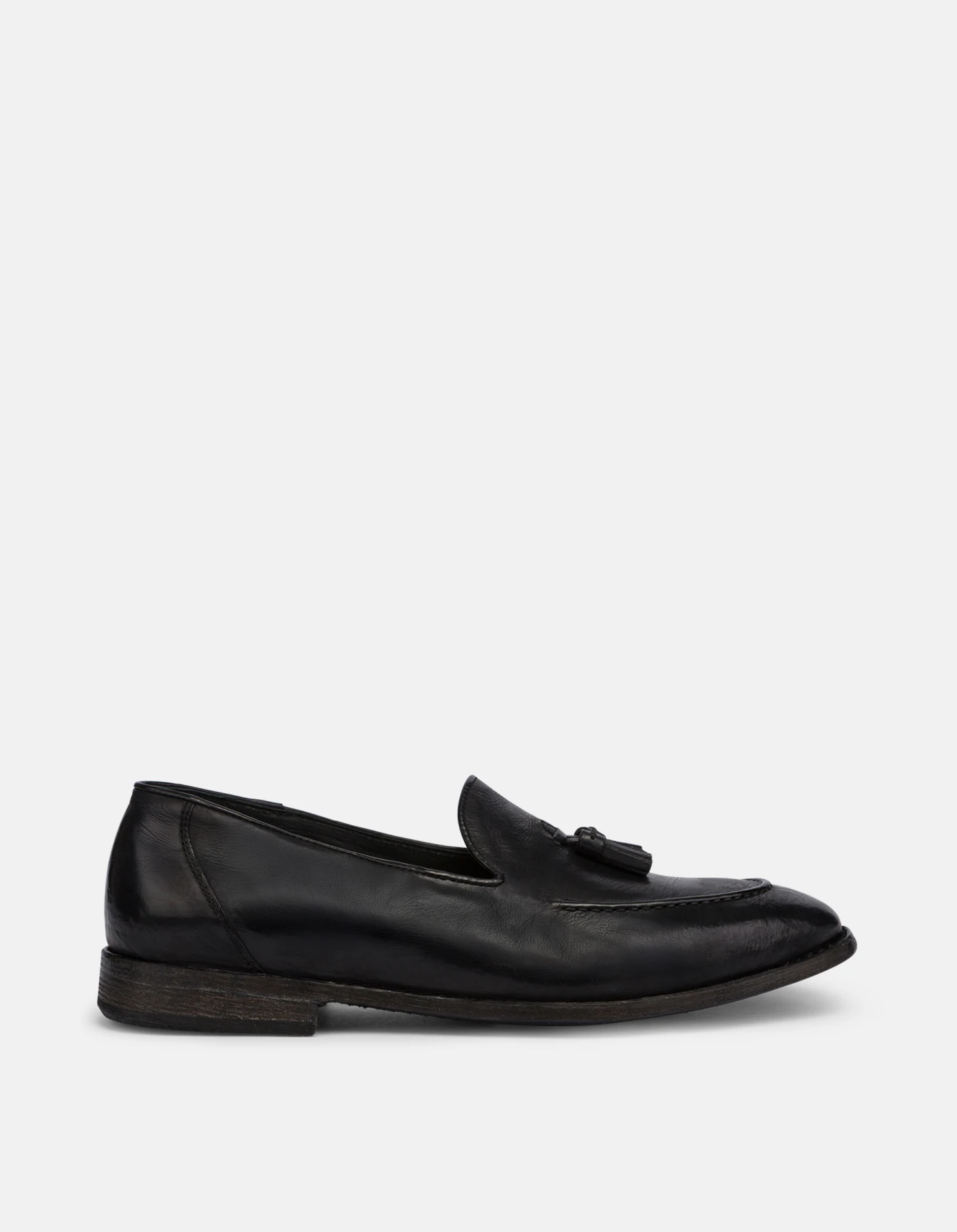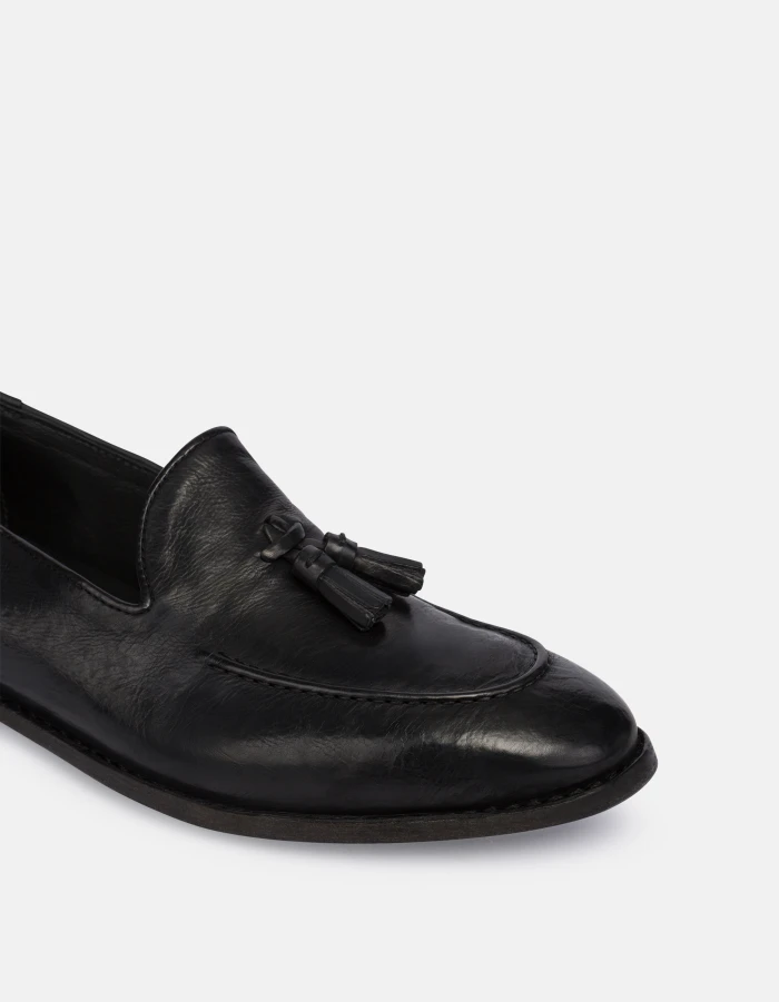 Mokassins mit Quasten und Ledersohle. Vintage-Behandlung. Leder. Made in Italy