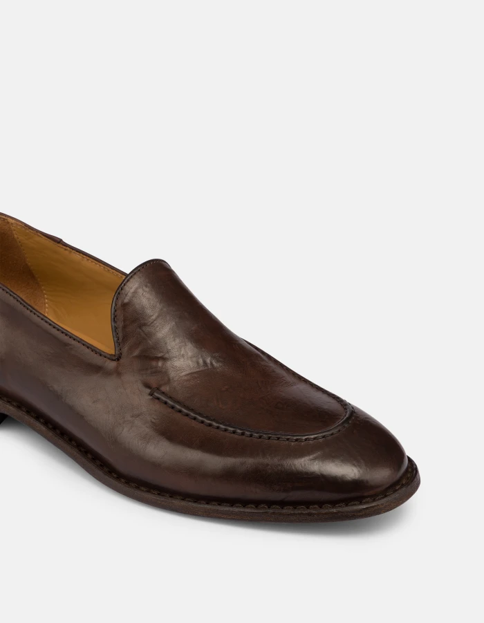 Mokassins mit Ledersohle. Vintage-Behandlung. Leder. Made in Italy