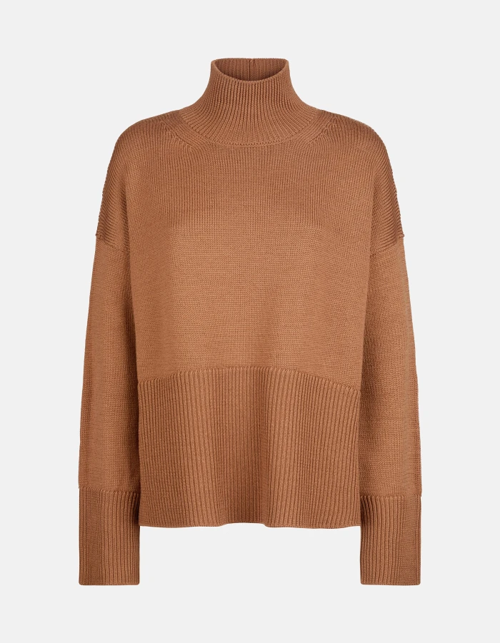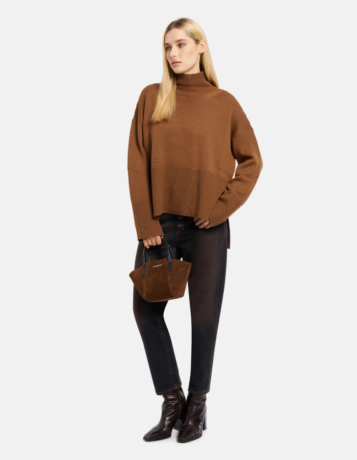Rollkragenpullover in Oversize-Passform mit langen Ärmeln, Schlitzen an den Seiten und appliziertem Logo am Rücken. Reine Wolle. Dondup-Logo. Made in Italy