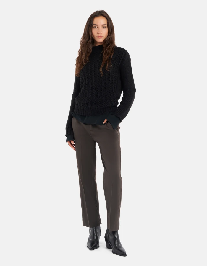 Pullover in normaler Passform aus Alpaka und Schurwolle mit Trichterkragen