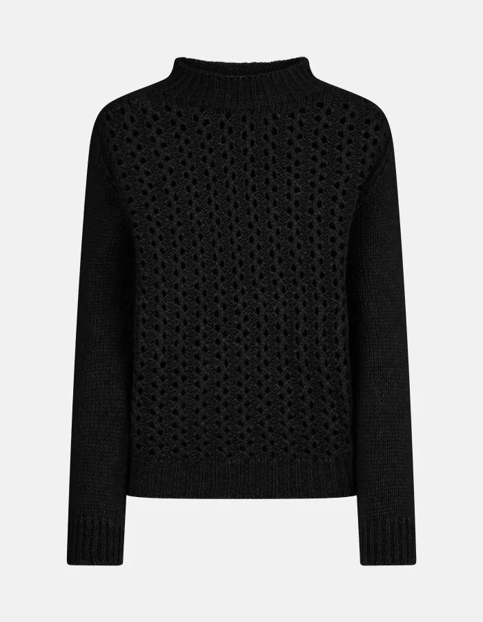 Langärmeliger Pullover in normaler Passform mit Trichterkragen, Lochmuster vorne und Rücken und Ärmel in Glattstrick. Muster. Dondup-Logo. Made in Italy