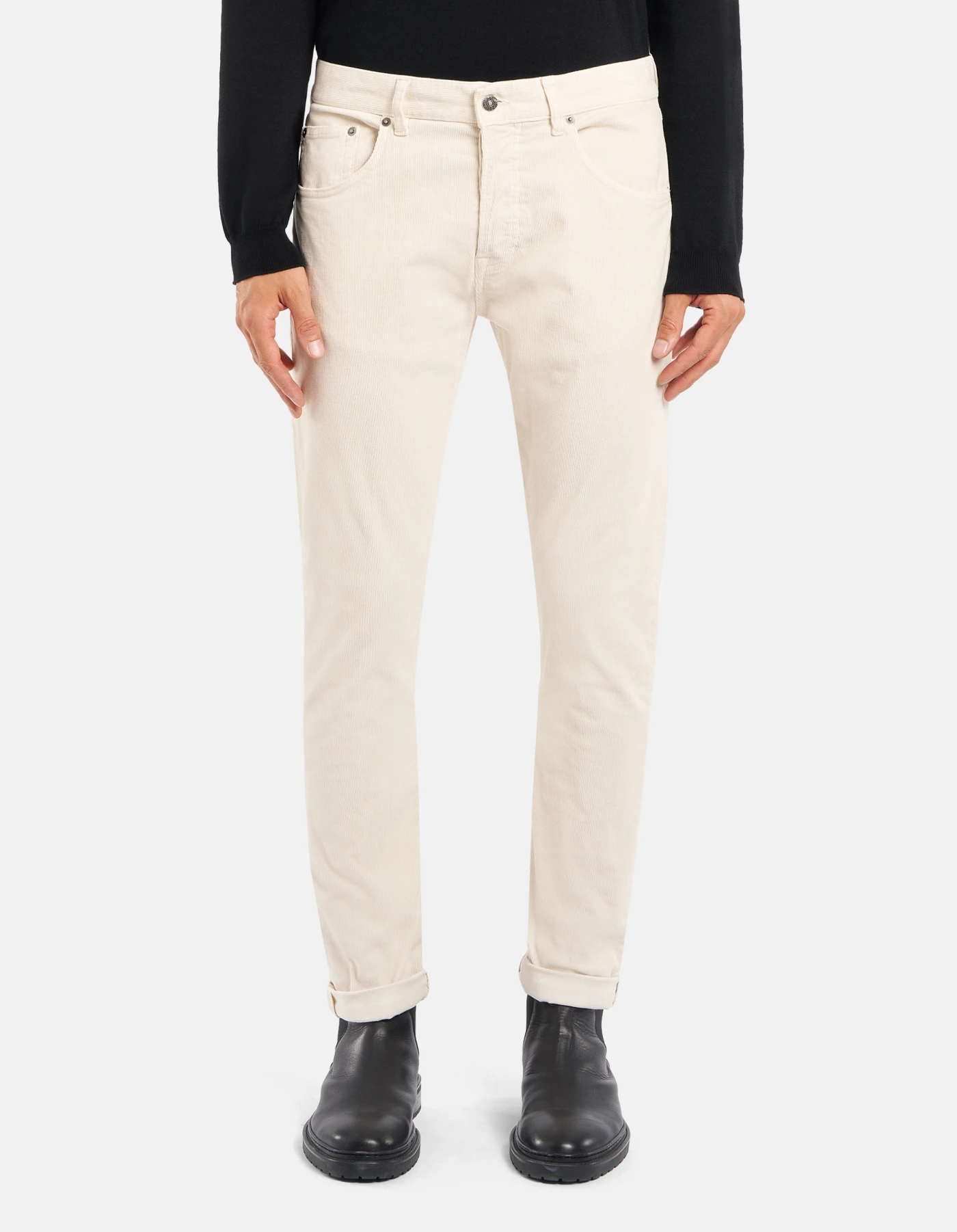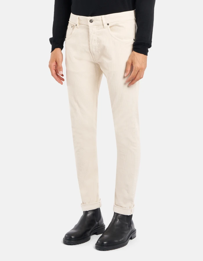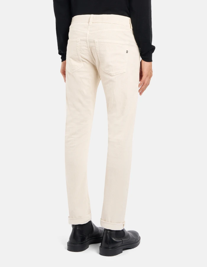 Five-Pocket-Hose Icon in normaler Passform mit normalem Bund. Cordsamt, 1500 Rippen. Stückfärbung. Dondup-Logo. Made in Italy