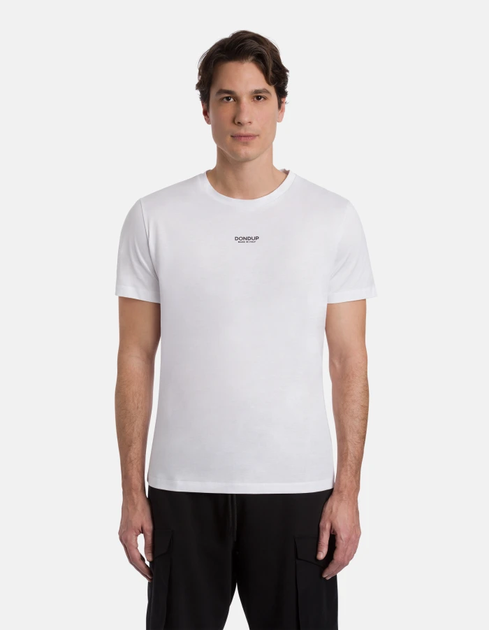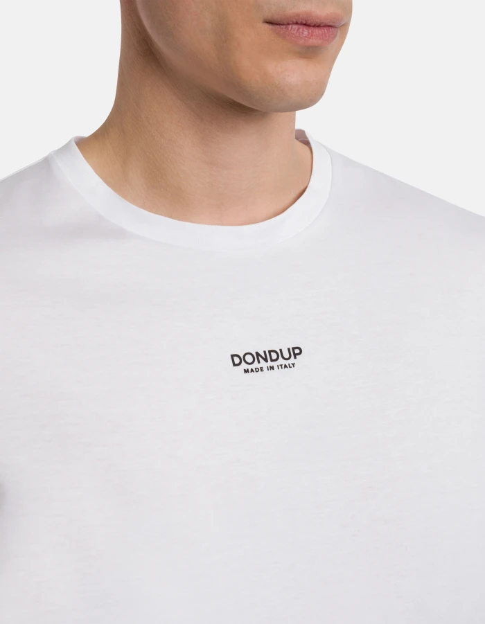 T-Shirt mit Rundhalsausschnitt in normaler Passform mit kurzen Ärmeln und Logo-Print mittig auf der Vorderseite. Reiner Baumwolljersey. Dondup-Logo. Made in Italy