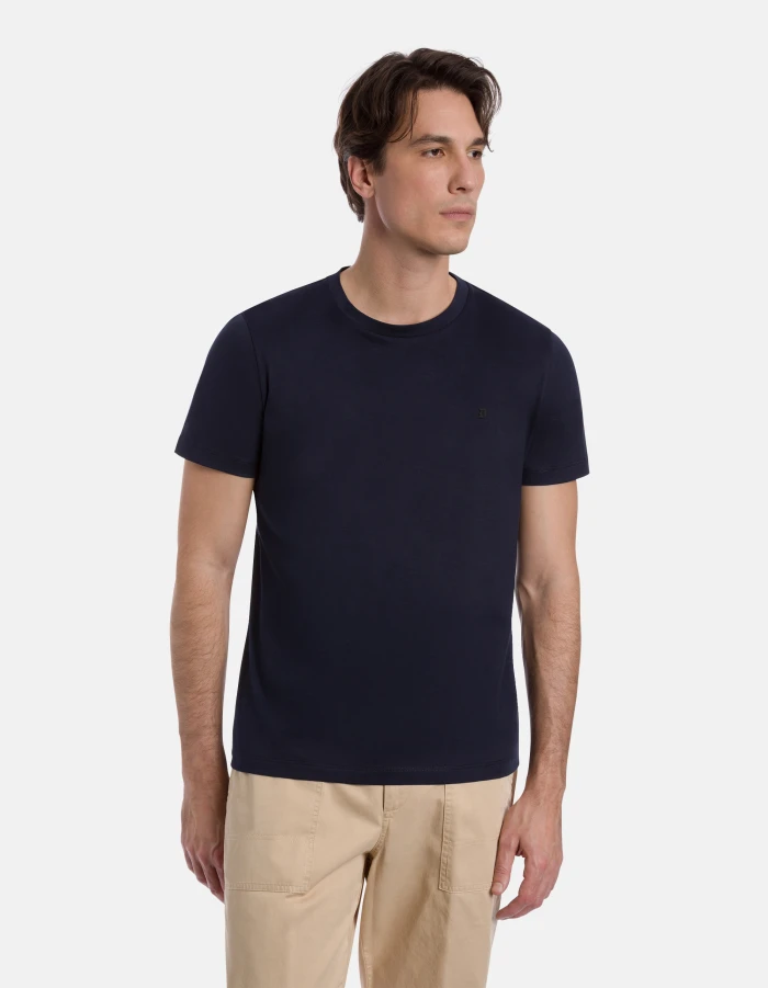 T-Shirt in normaler Passform mit Rundhalsausschnitt, kurzen Ärmeln und appliziertem D-Logo links auf der Brust. Reiner Baumwolljersey. Dondup-Logo. Made in Italy
