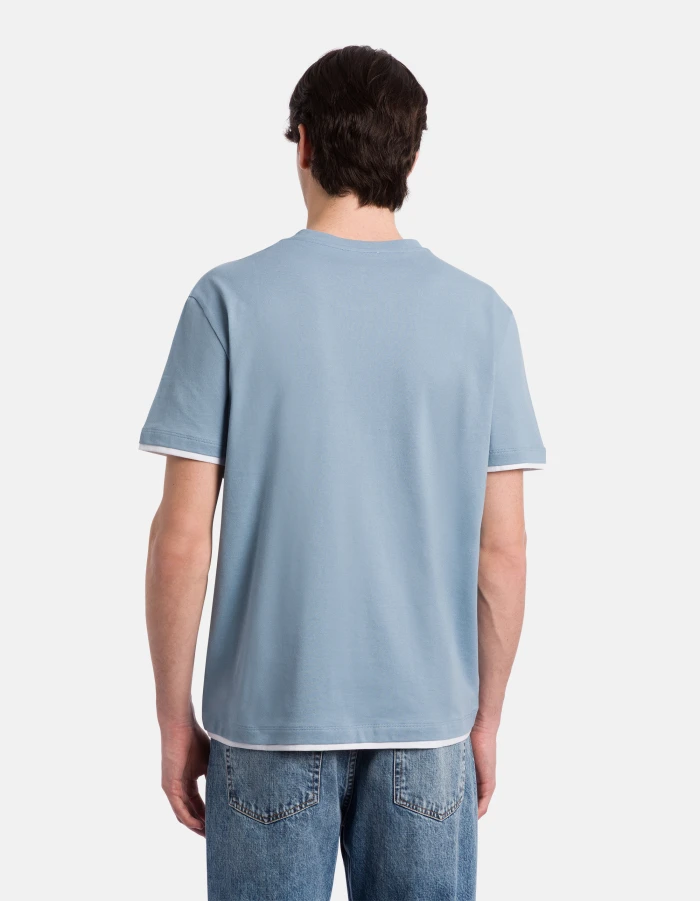 Regular-Fit T-Shirt aus zweifarbigem Piqué mit Rundhalsausschnitt