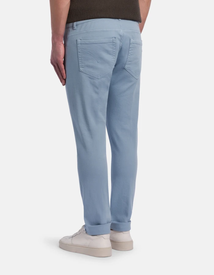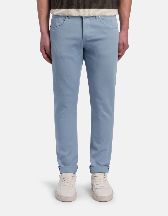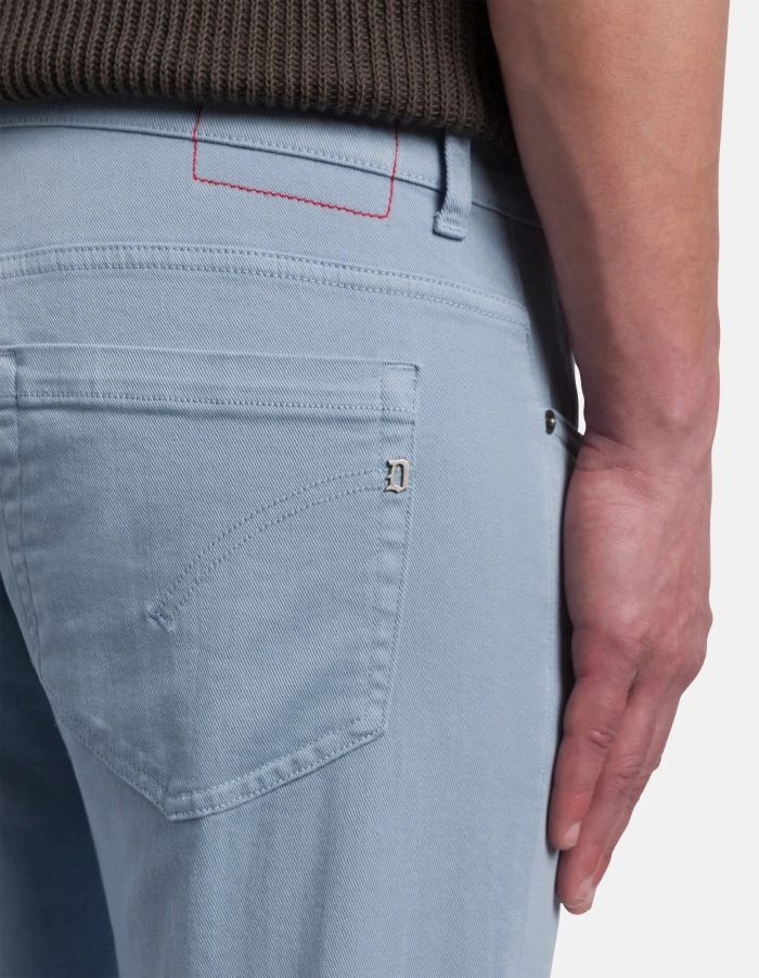 Five-Pocket-Jeans George in Skinny-Passform mit niedrigem Bund und kleiner Leistentasche. Left-Hand-Bull mit Stretchanteil 10 oz. Stückfärbung. Dondup-Logo. Made in Italy