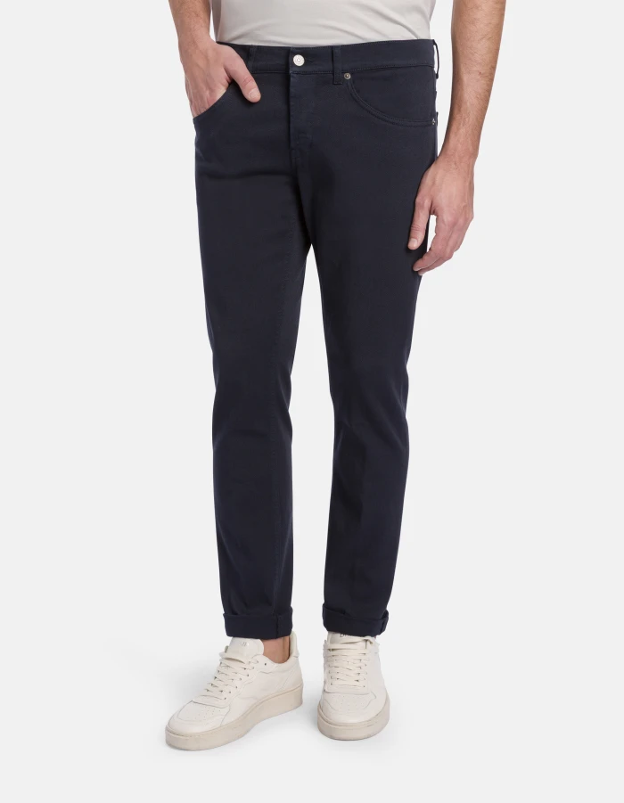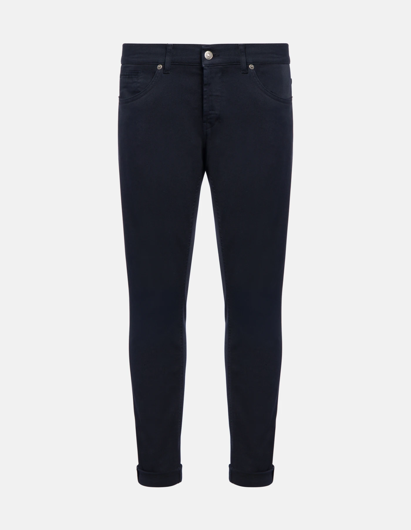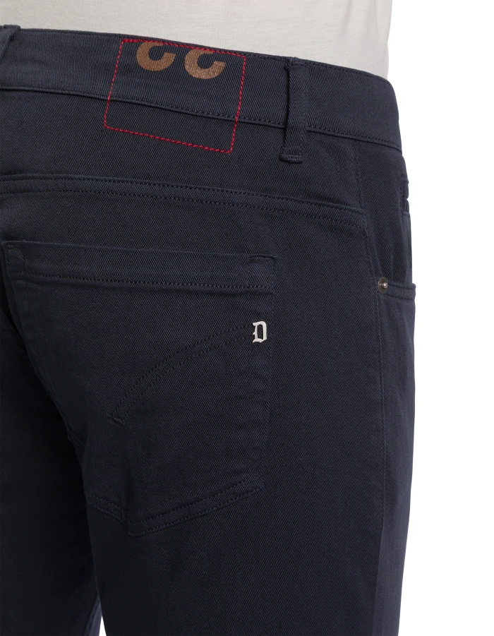 Five-Pocket-Jeans George in Skinny-Passform mit niedrigem Bund und kleiner Leistentasche. Left-Hand-Bull mit Stretchanteil 10 oz. Stückfärbung. Dondup-Logo. Made in Italy