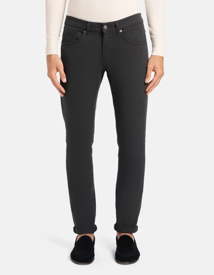 Five-Pocket-Jeans George in Skinny-Passform mit niedrigem Bund und kleiner Leistentasche. Stretch-Bull Bluesign APPROVED, 11 1/2 oz. Bluesign-Stückfärbung. Dondup-Logo. Made in Italy