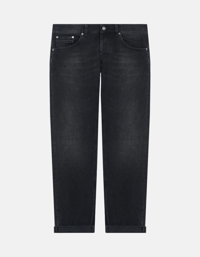 Ritchie five-pocket skinny jeans, low waist. Black black 15 oz stretch comfort denim. Clean black wash. Dondup logo. Made in Italy