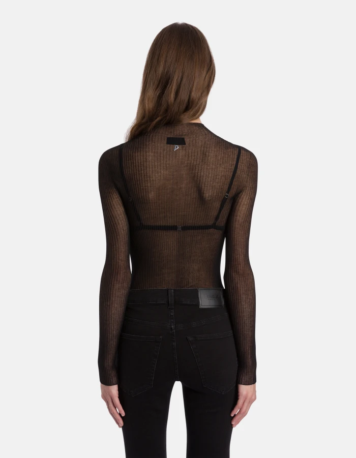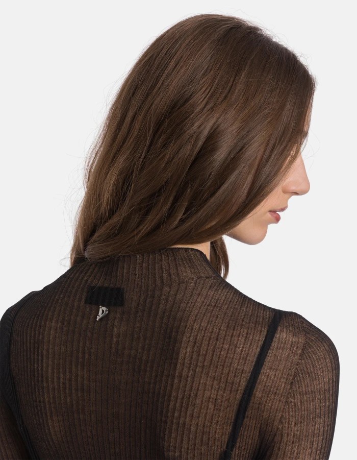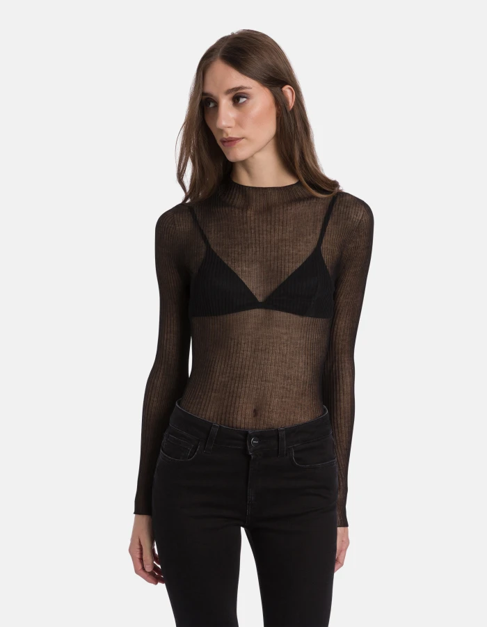 Slim-fit polo neck jumper with long sleeves. Transparent rib. Dondup logo. Made in Italy