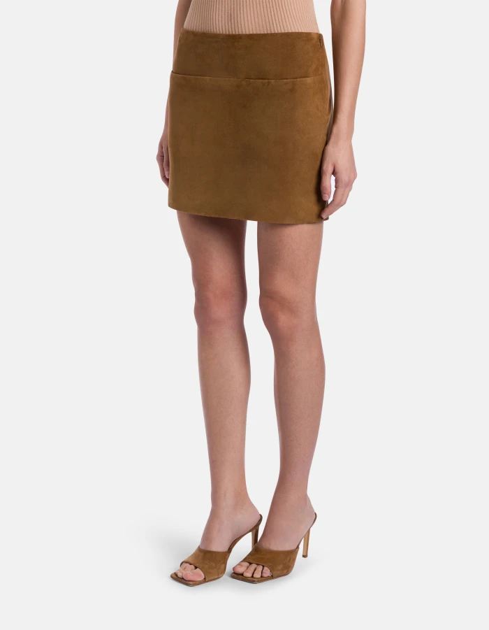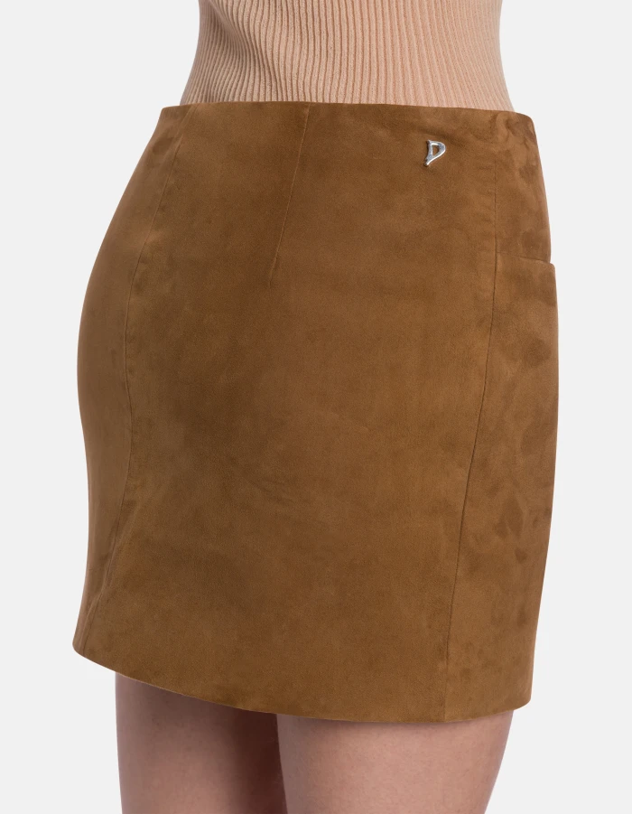 Mini skirt with peplum cut and in-seam pockets on the front. Suede. Dondup logo. Made in Italy
